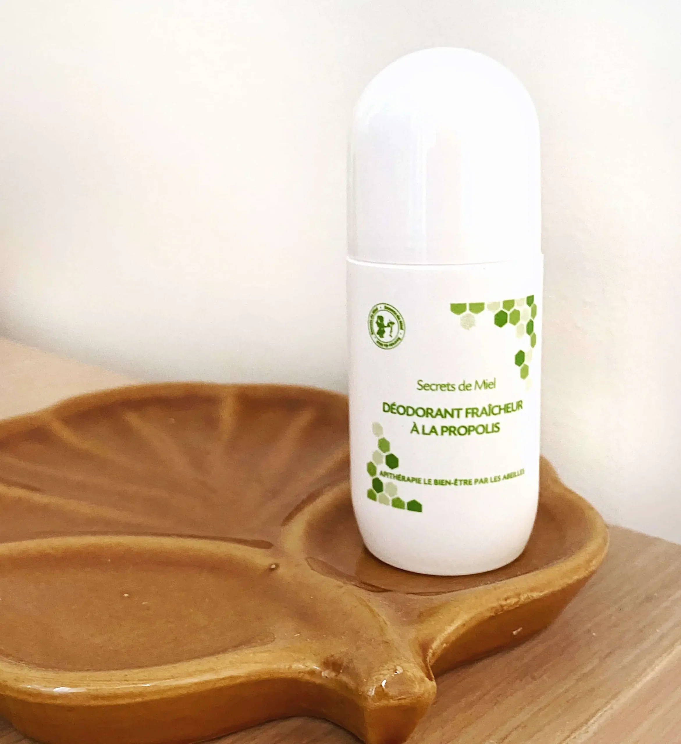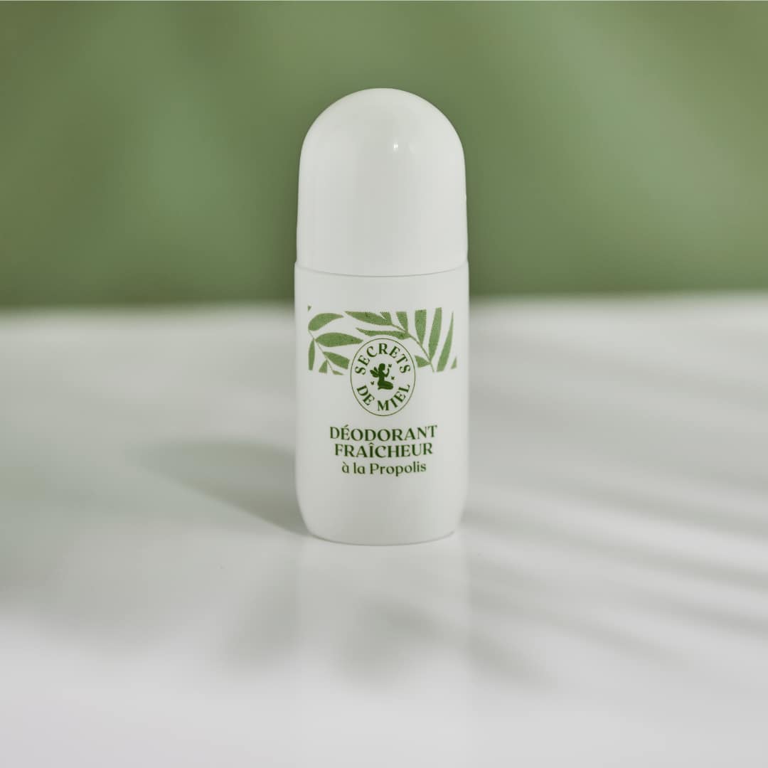 Notre déodorant à la Propolis est spécialement conçu pour vous offrir confort et fraîcheur tout au long de la journée. Sa formule naturelle allie le Zinc, qui combat les bactéries responsables du développement des mauvaises odeurs, à l’amidon de Maïs pour absorber la transpiration. Enrichi en Aloe Vera, la peau délicate des aisselles est hydratée, adoucie, saine et apaisée.