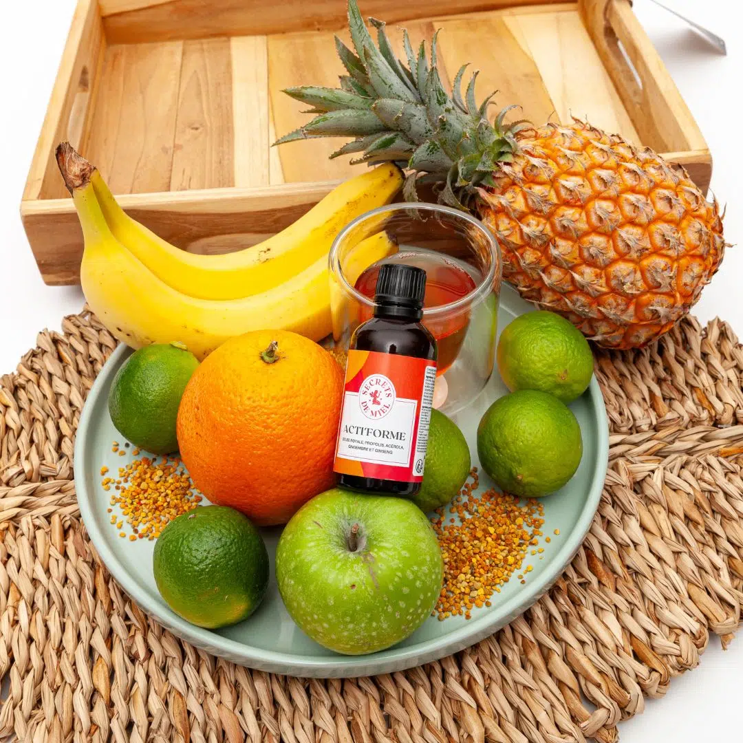 Une formule puissante qui allie une synergie d’actifs revitalisants dont la Vitamine C et le Guarana, qui contribuent à réduire la fatigue. Gelée Royale, Propolis, Citron, Romarin et huiles essentielles viennent compléter cette recette aussi boostante que délicieuse. Idéale en période chargée ou pour retrouver rapidement la forme.