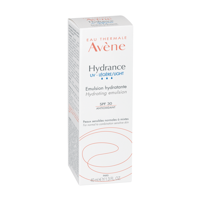 Grâce au toucher caresse de ce fluide léger, l’hydratation devient la base de la routine beauté de toutes les peaux sensibles déshydratées normales à mixtes. Hydrance UV Légère Émulsion hydratante leur apporte une recharge d’Eau thermale d’Avène, pour offrir 24h d’hydratation et une haute protection SPF 30. Sa texture légère non collante laisse la peau souple et protégée, désaltérée tout au long de la journée, tandis que son parfum subtil réveille les sens. Également disponible en version teintée BB.