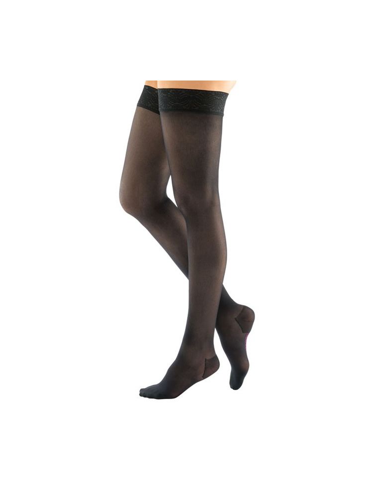 Des coutures bord à bord sur le bout de pied et sur la bande autofixante. Aucun effet garrot de la couture située à la base de la bande autofixante. Bande platinium pour limiter le risque d’allergie.
