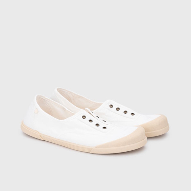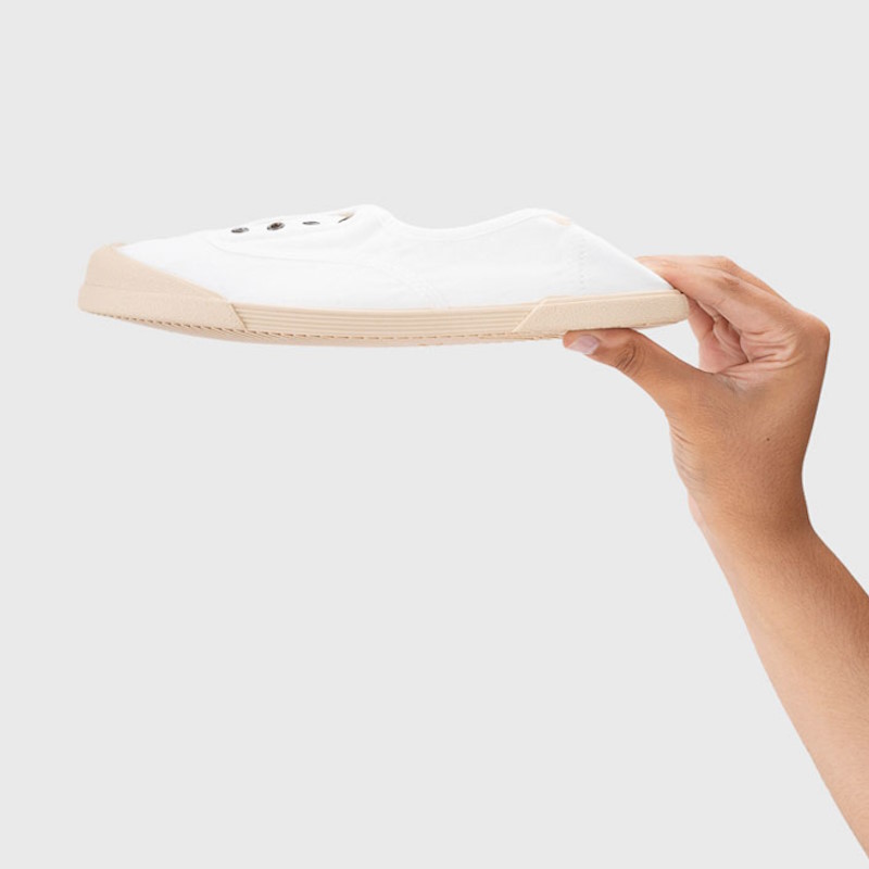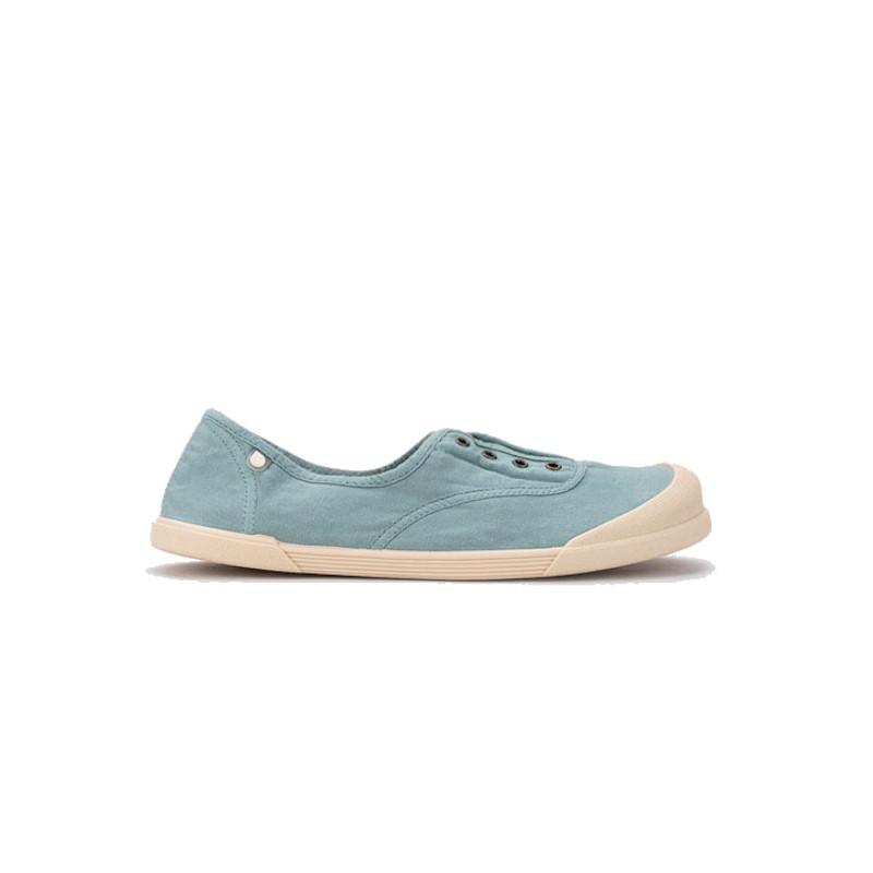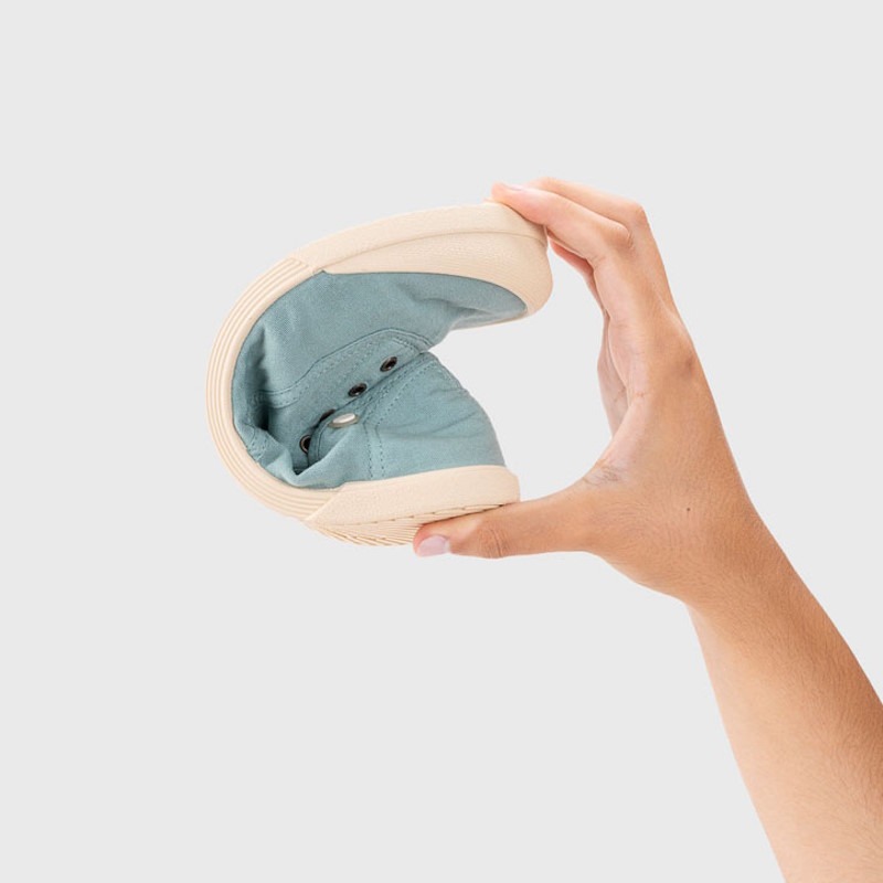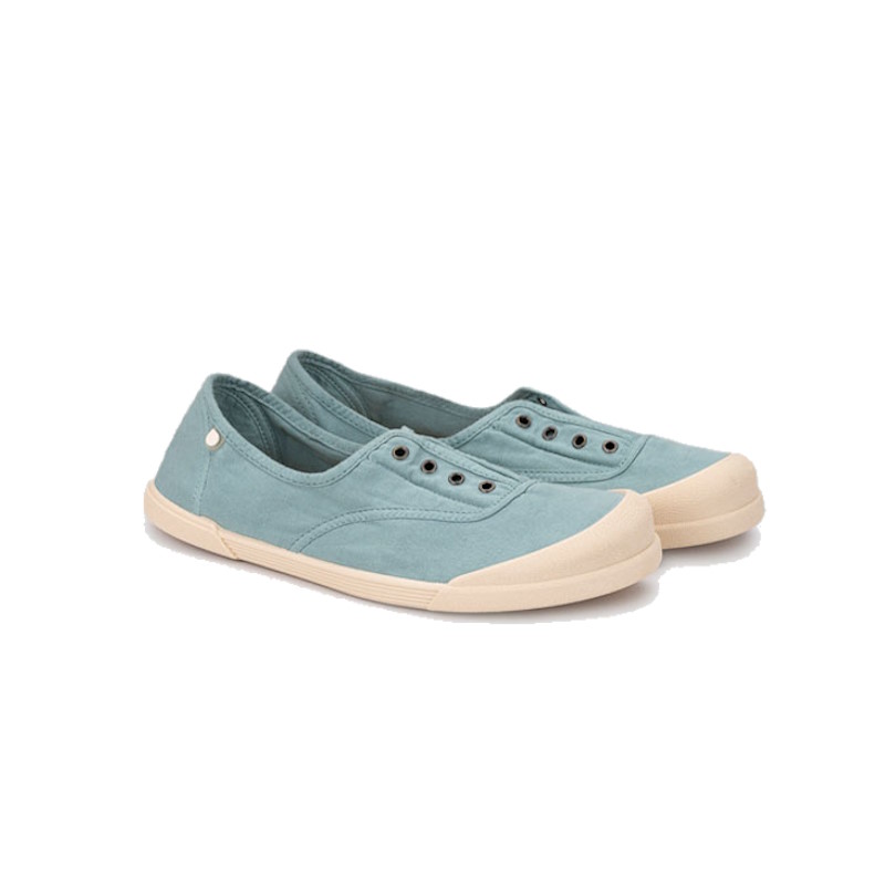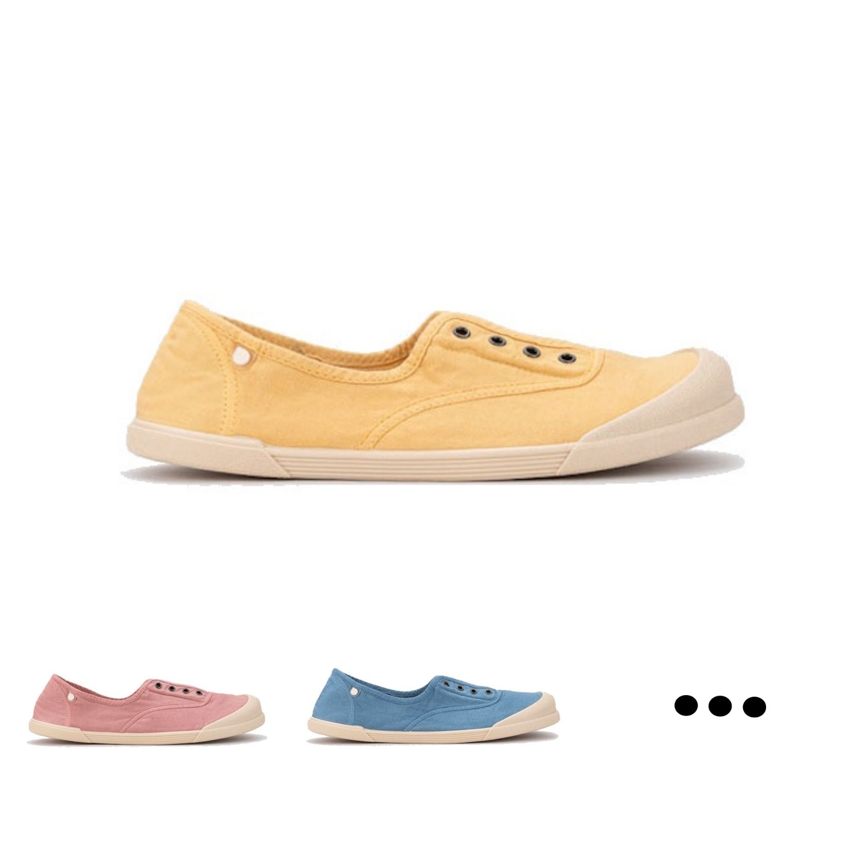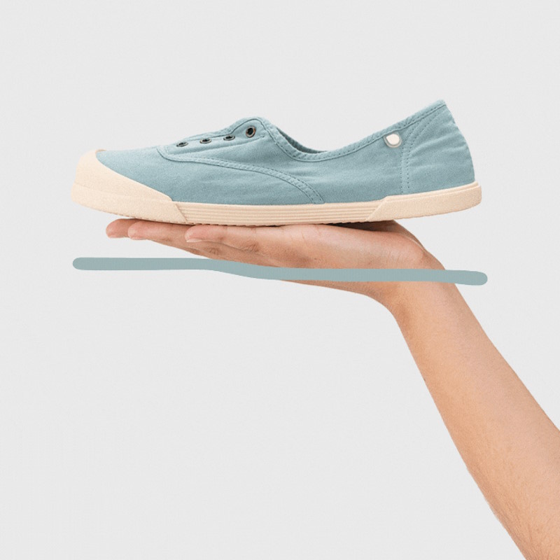 Baskets femme en toile 100 % coton, modèle Barefoot Medium, zéro drop, souples, douces et avec semelle amovible. L’encre présente des imperfections dues au lavage.