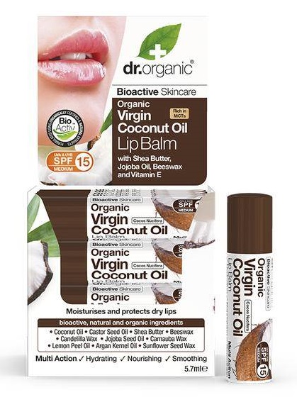 Baume à Lèvres spf15 -Huile de Coco Vierge – BIO- Soins Lèvre – Lip Balm – Dr Organic
