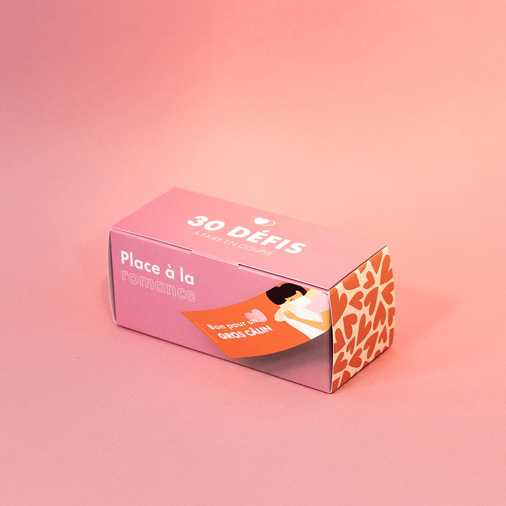 Idées de défis : s’envoyer des déclarations tout au long de la journée, bon pour un gros câlin, s’embrasser comme à nos 15 ans,…etc.