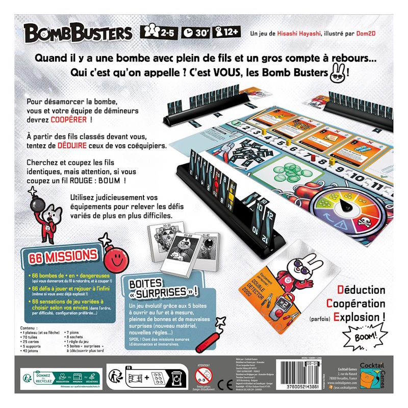 Gare à l’explosion lors des 66 missions rejouables, aux règles uniques et évolutives avec 5 boites “surprises” !