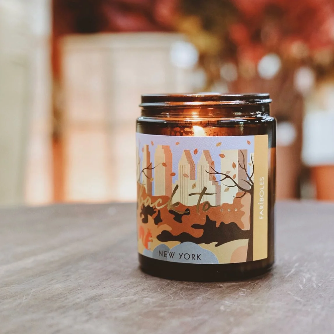 Embarquez pour un voyage automnal dans Central Park avec la bougie New-York, fabriquée à la main par des artisans ciriers français.