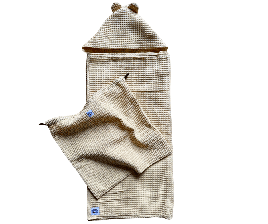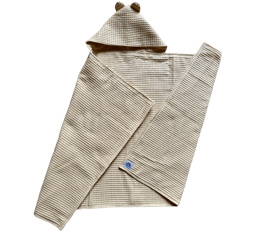 Une cape de bain grand format en nid d’abeille.