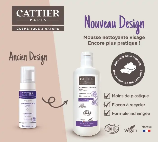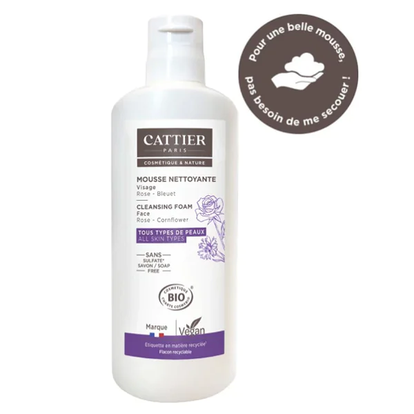 Cattier Mousse Nettoyante Visage Bio – Rose & Bleuet – 150 ml