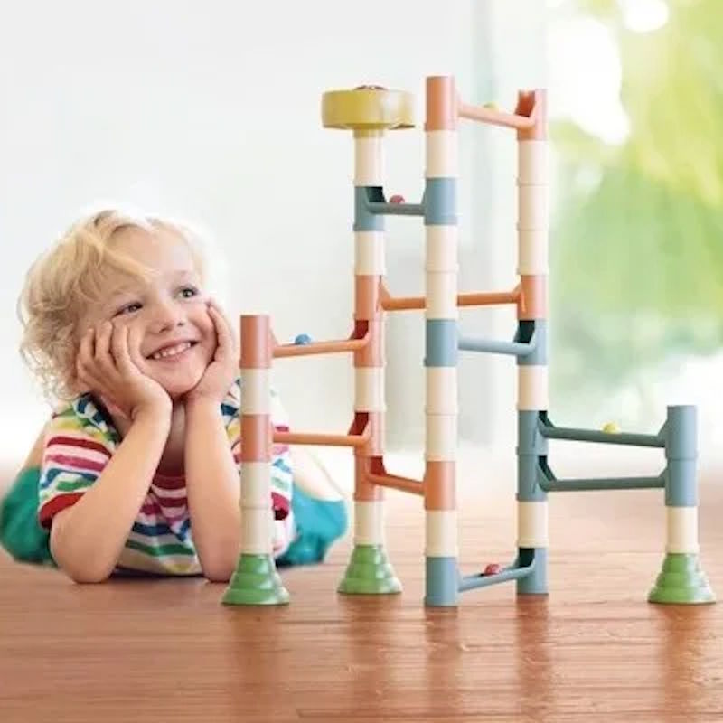 Stimulez la créativité et la capacité de raisonnement de votre enfant avec le circuit de billes Playbio.