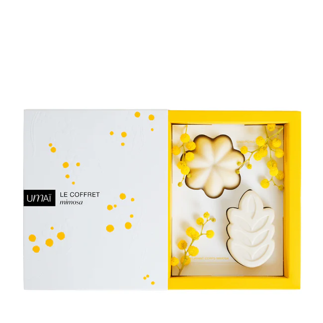 Offrez ou offrez-vous le Coffret Mimosa d’Umaï. Un cadeau parfait pour prendre soin de soi, dans le respect de la nature et de votre bien-être quotidien.