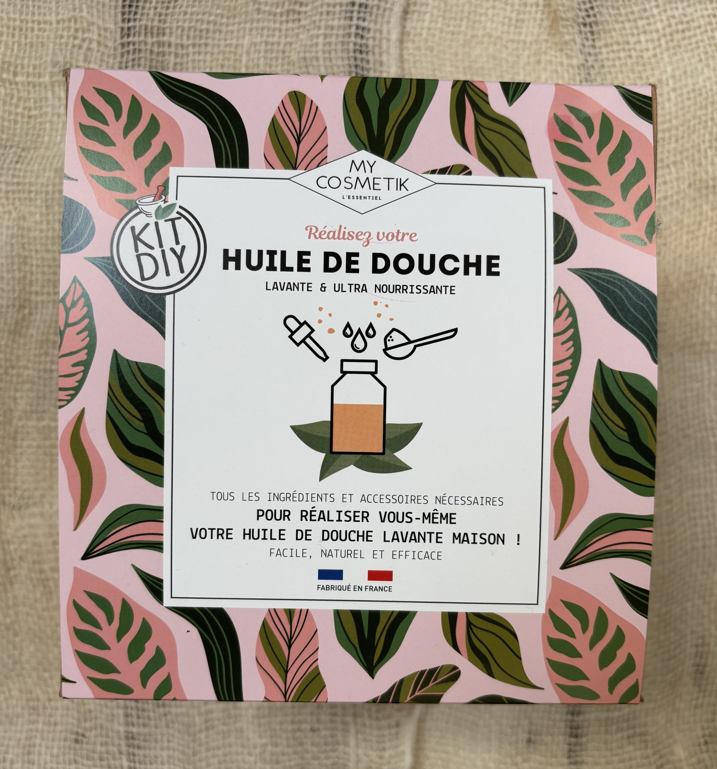 Il contient tous les ingrédients, les ustensiles nécessaires ainsi qu’une fiche recette détaillée pour la réalisation de cette huile de douche ultra nourrissante.