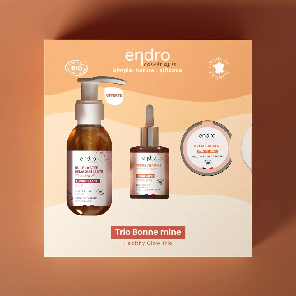 Le coffret trio Bonne Mine de chez Endro Cosmétiques est une invitation à une routine beauté naturelle et efficace. Conçu avec des formules simples et respectueuses, ce coffret répond aux besoins essentiels de votre peau tout en préservant l’environnement. Il est parfait pour découvrir ou adopter des produits cosmétiques sains et responsables.