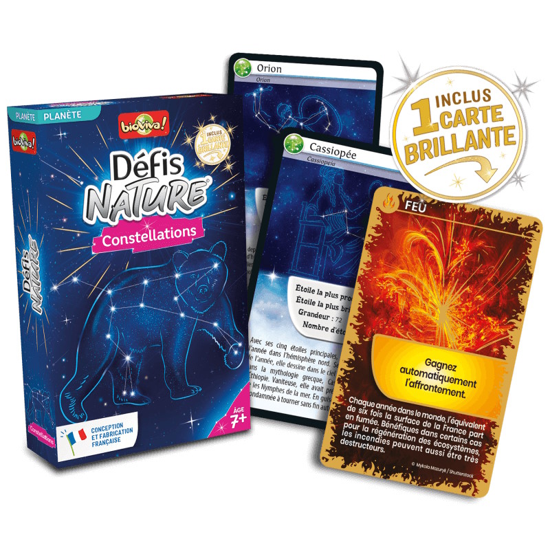 Défis Nature – Constellations vous invite à explorer les mystères des constellations ! Découvrez leurs histoires exceptionnelles, puis pariez sur leurs points forts pour collecter toutes les cartes du jeu et remporter la partie. Alors, prêts à relever le défi ?