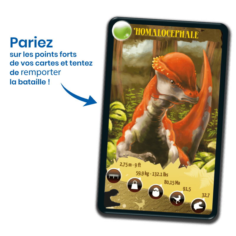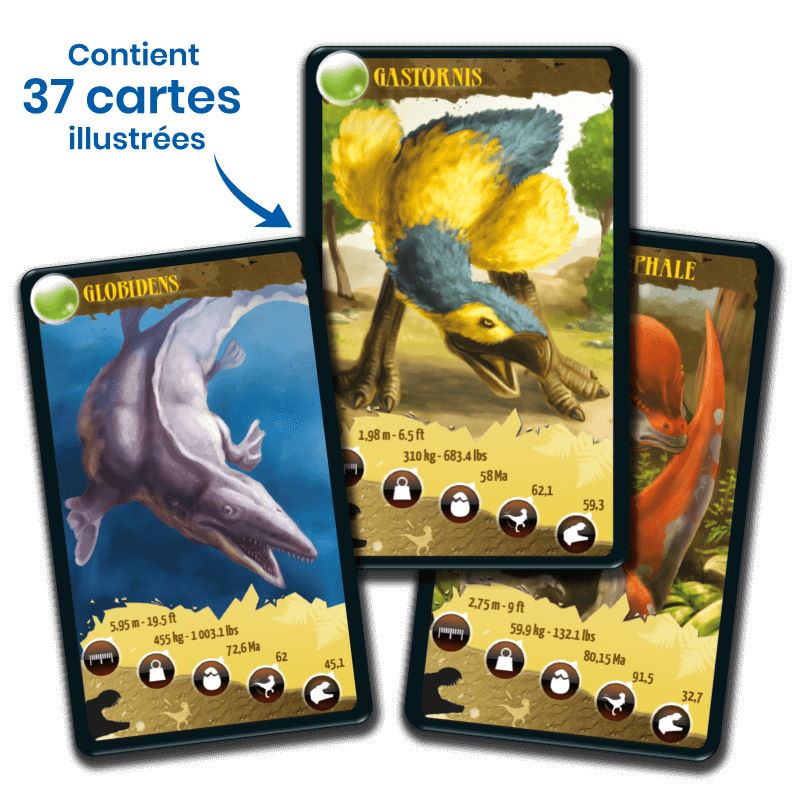 Le principe de Défis Nature – Dinosaures 2 vert est simple : lors d’un tour de jeu, les enfants de 7 ans et + parient sur l’un des points forts de leur Dinosaure. Le joueur qui possède la plus forte caractéristique remporte les cartes des autres joueurs. Le premier à collecter toutes les cartes du jeu gagne la partie.