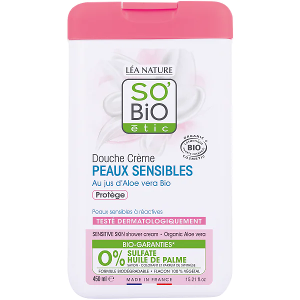 Douche Crème Peaux Sensibles au Jus d’Aloe Vera Bio – 450ml- So’Bio étic