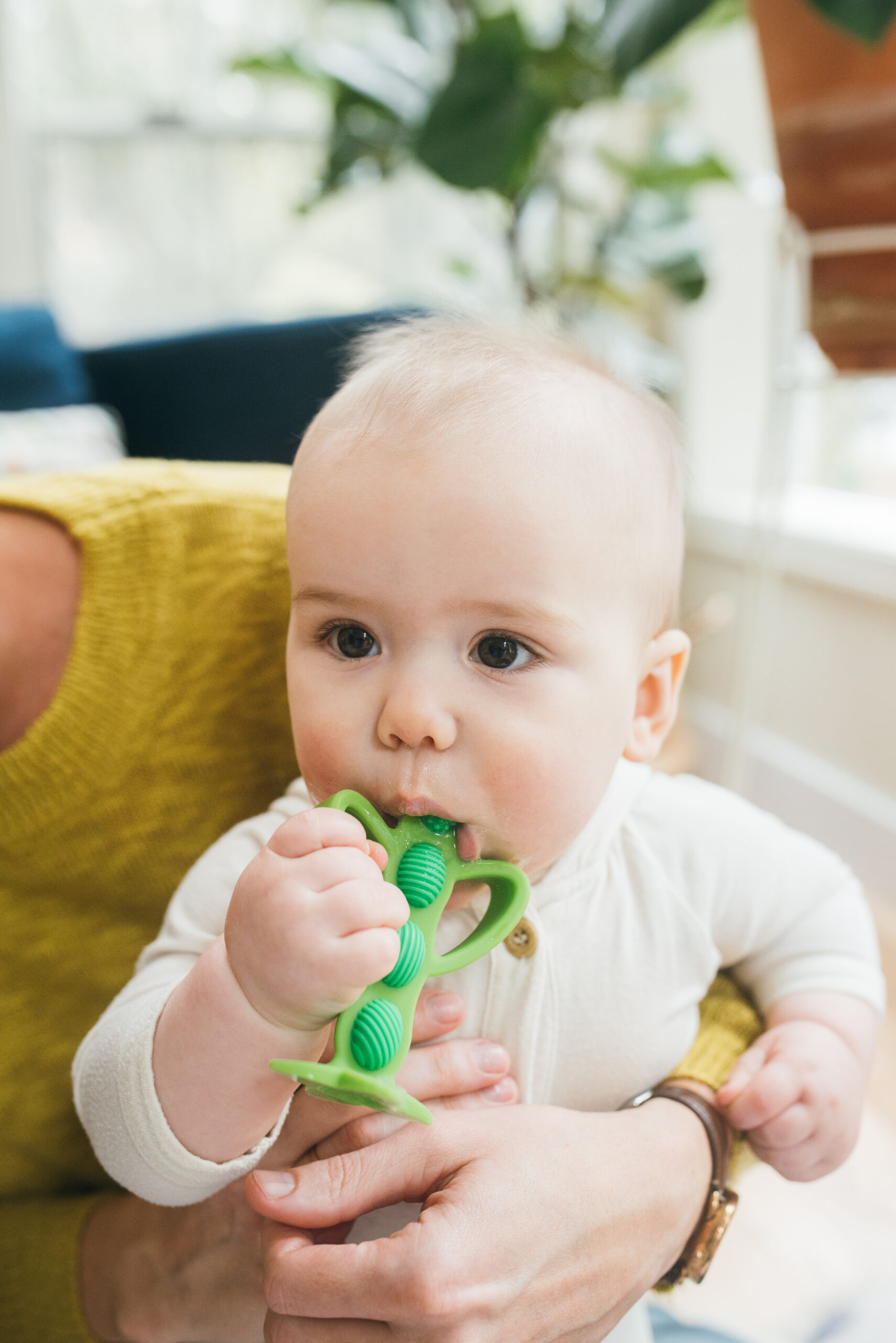 Ses petites bosses et stries massent en douceur les gencives sensibles de votre bébé tout en stimulant sa motricité buccale grâce aux différentes textures.