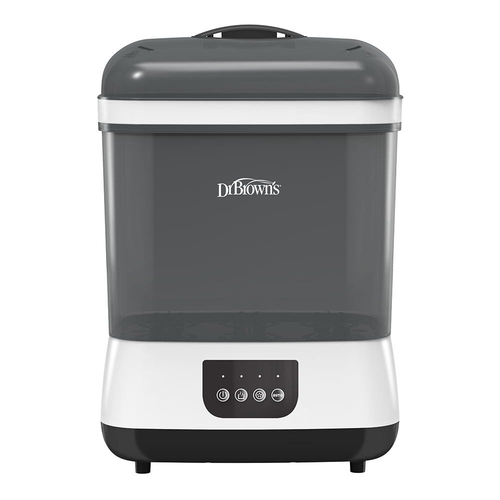 Stérilisez et séchez jusqu’à six biberons, pièces de tire-lait, tétines et anneaux de dentition facilement avec le Dr. Brown’s Stérilisateur avec fonction de séchage. Offrant quatre fonctions essentielles – stérilisation, séchage, combinaison des deux ou simple stockage – cet appareil multifonction est indispensable dans la routine de bébé.
