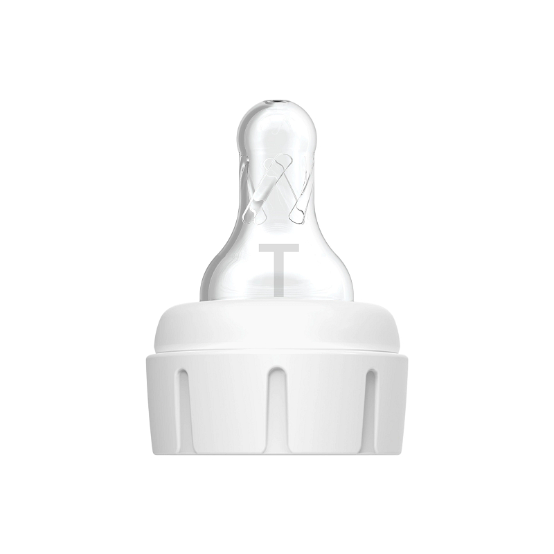 Le débit de cette tétine se situe entre celui de la tétine prématurée et celui de la tétine Phase 1. Vous pouvez reconnaître cette tétine grâce à la lettre T (Transition) gravée dessus ; auparavant, elle portait la lettre N (Newborn).
