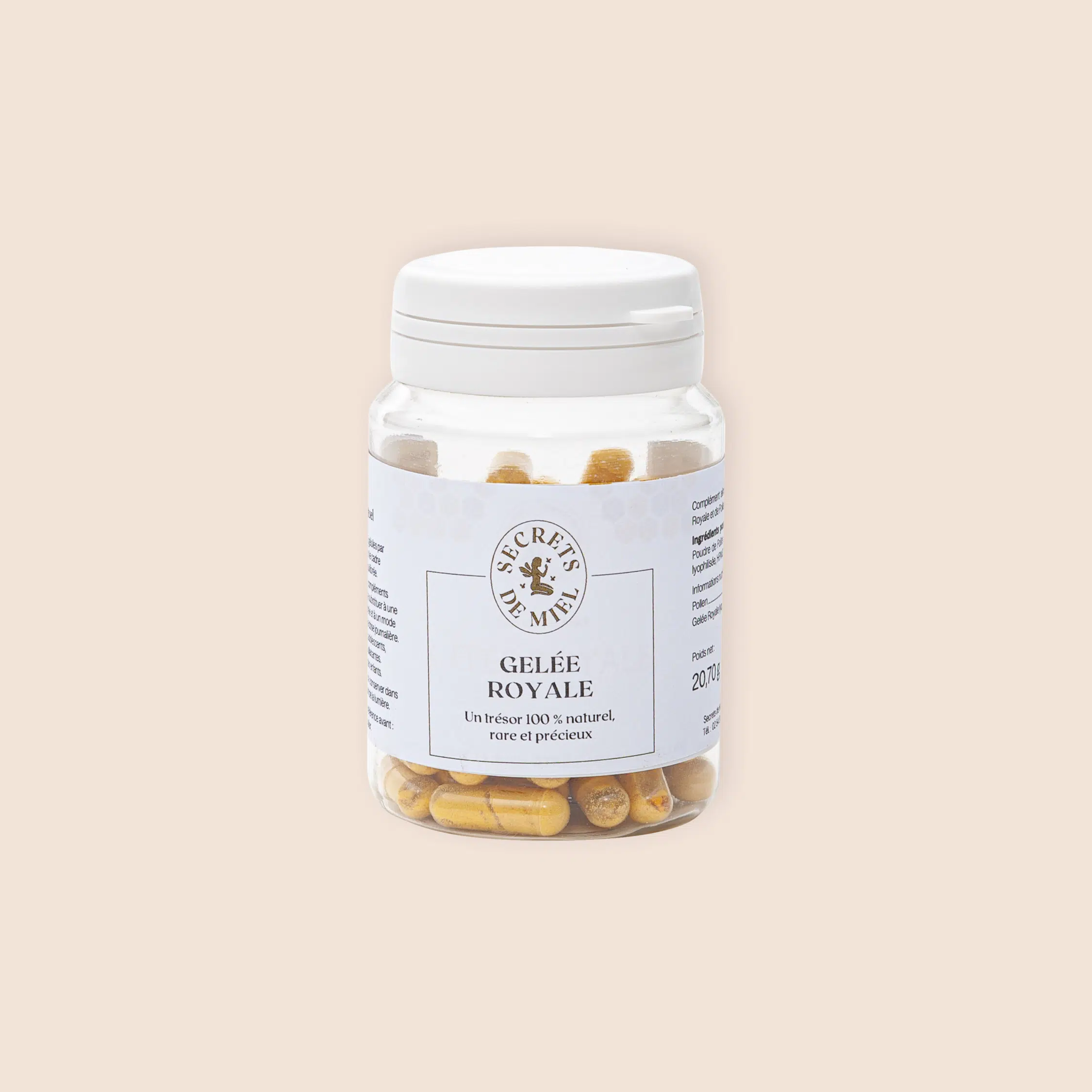 Tous les bienfaits de la Gelée Royale dans une forme ultra-pratique de gélules, sans goût ni conservation au frais, et facile à emporter partout avec vous.