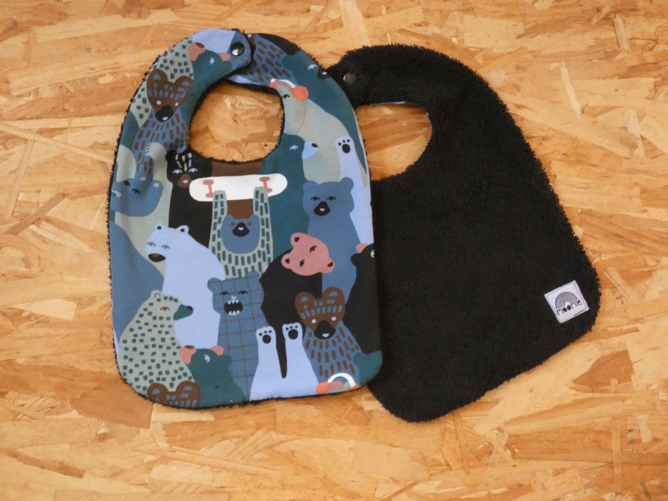 Étiquette de la marque Moomie au dos du bavoir