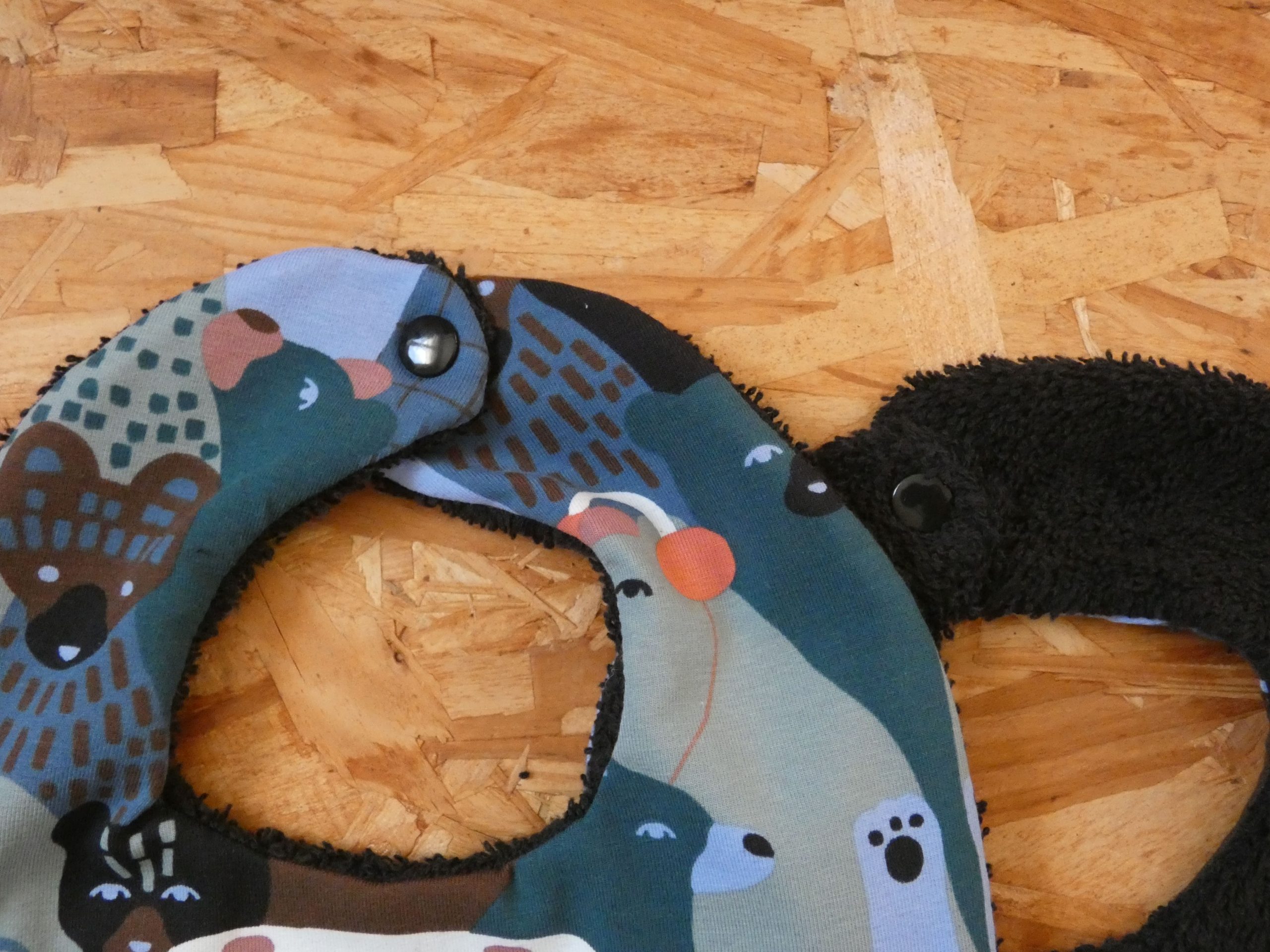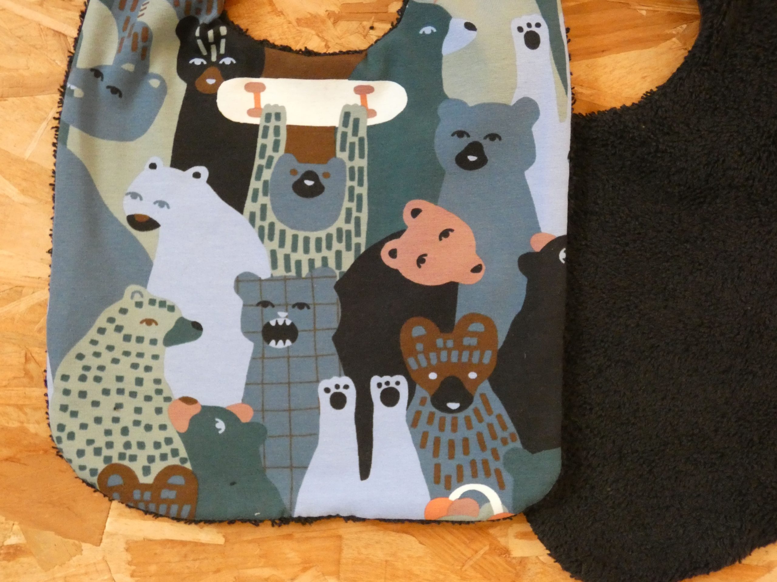 Un bavoir avec un imprimé ours dans les tons de bleu pour un repas au top !