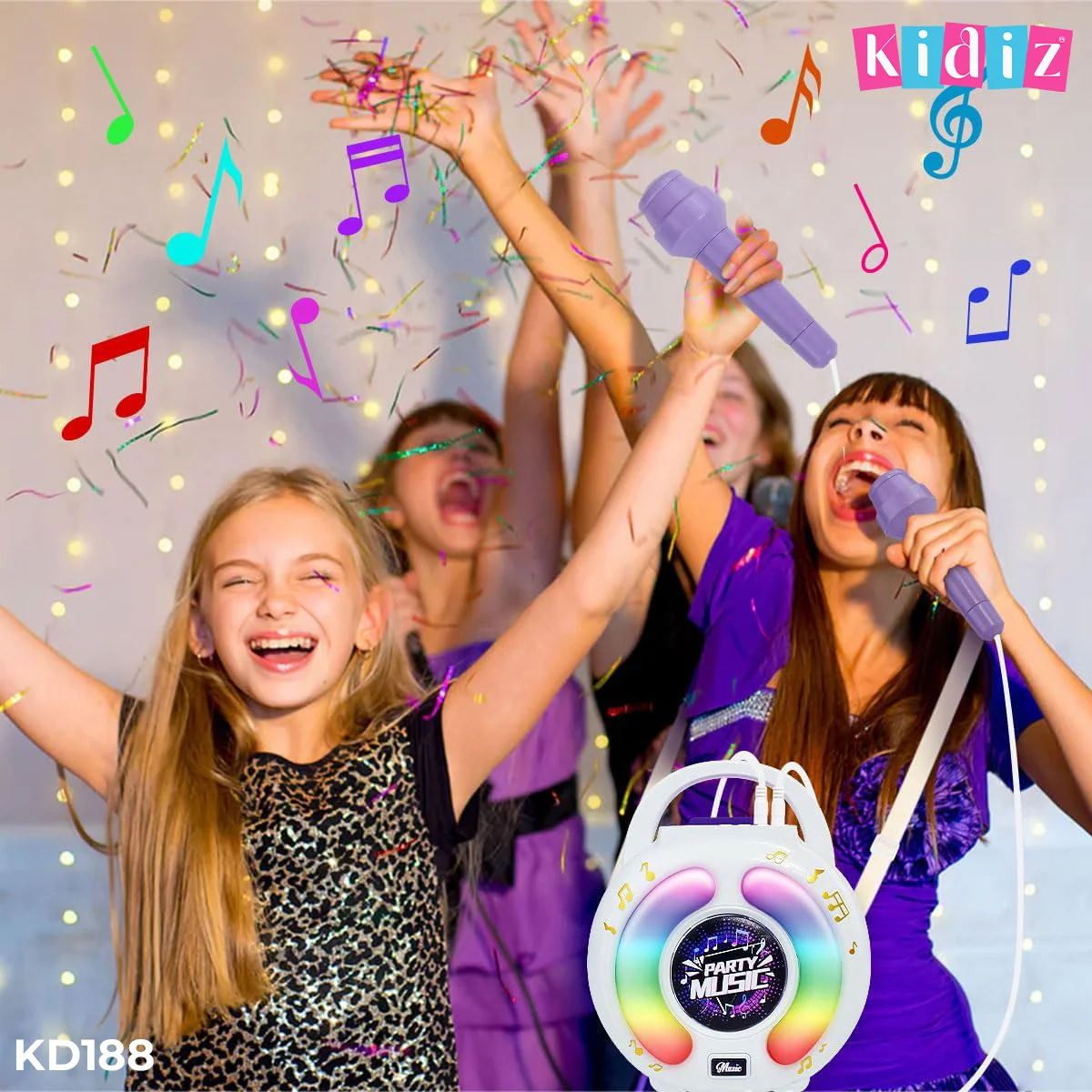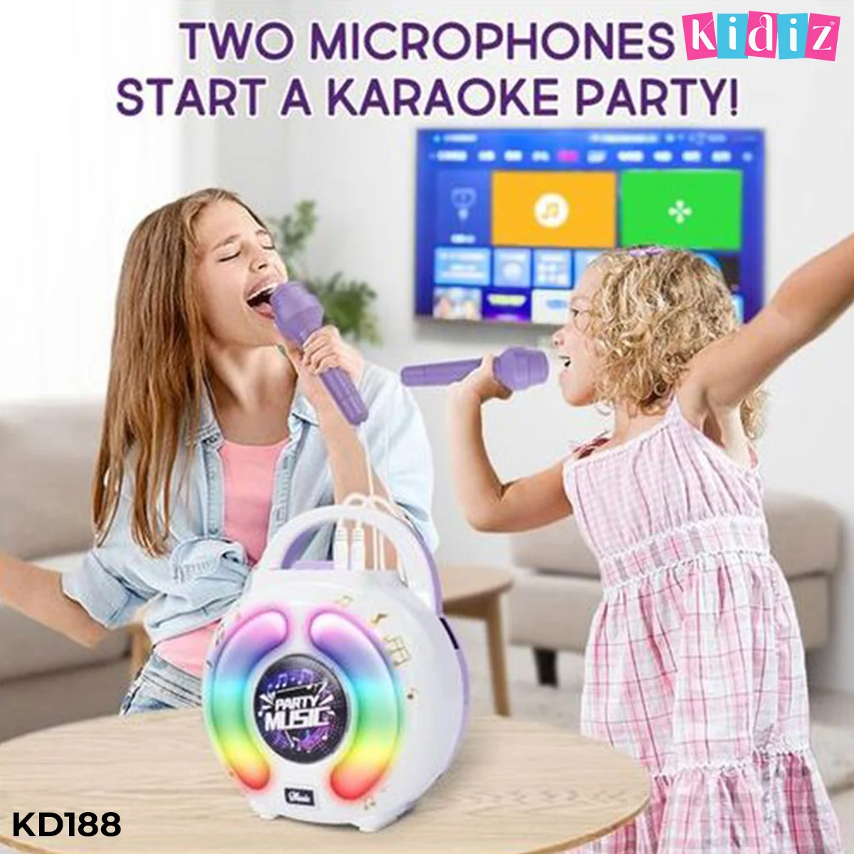 Conçu pour offrir un son de haute qualité, ce haut-parleur de karaoké est équipé de haut-parleurs audio de premier ordre et d’un traitement numérique du signal amélioré pour un son clair et net. Les quatre niveaux de volume réglables permettent une expérience d’écoute personnalisée. Pour ajouter à l’excitation, cinq lumières magiques s’allument automatiquement en synchronisation avec la musique, créant une ambiance dynamique et animée lors de n’importe quelle fête ou moment de jeu. C’est la combinaison parfaite de fun, de son et d’effets visuels pour des instants inoubliables.