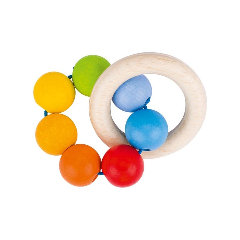 Les hochets en bois Goki éveillent les réflexes de bébé.