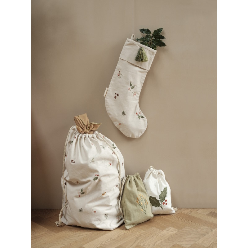Une hotte de noêl en coton biologique pour emballer les cadeaux sous le sapin.