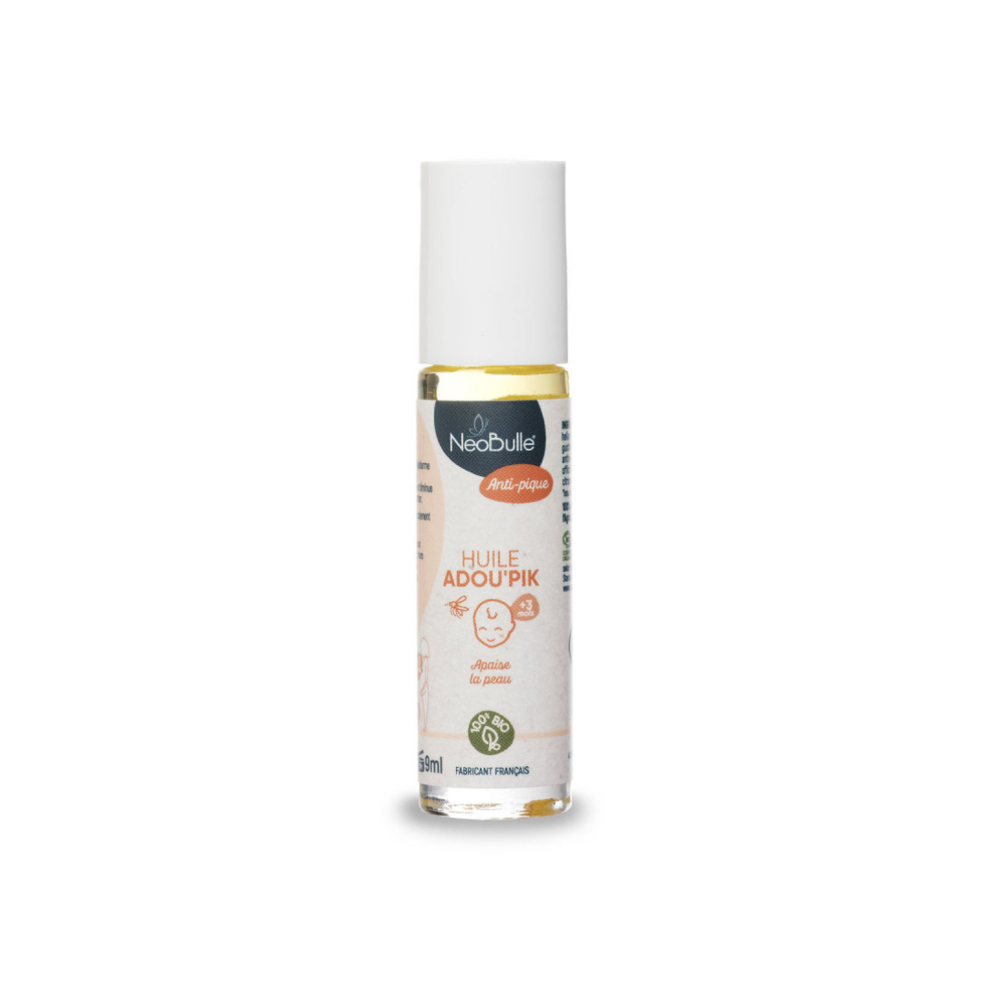 Découvrez l’Huile Adou’pik Néobulle. L’Huile Adou’pik Néobulle est l’allié naturel contre les piqûres de moustiques, guêpes et orties. Grâce à sa formule composée d’huiles essentielles apaisantes, calmantes et assainissantes, ce stick offre un soulagement rapide et efficace. Son format Roll-on pratique et transportable permet une application précise et ludique, idéale pour les enfants.