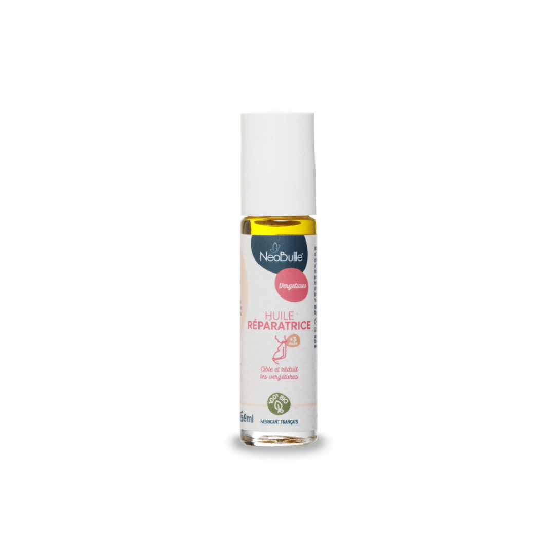 Découvrez l’Huile réparatrice Néobulle. L’Huile réparatrice Néobulle Cible et Réduit les Vergetures. Il s’agit d’un soin d’urgence ciblé pour lutter contre la formation des vergetures. Grâce à une formule 100% bio composée de 6 actifs naturels aux propriétés réparatrices, ce concentré agit de manière localisée pour apaiser et assouplir la peau. Son format roll-on pratique permet une application précise, idéale pour traiter les vergetures récentes (bleues, violacées) dès leur apparition.