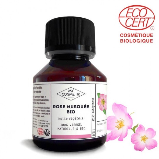 Cette huile végétale de rose musquée MY COSMETIK est une huile 100% pure issue de l’agriculture biologique. C’est une huile vierge, pressée à froid, sans solvant. Contenance 50 ml.