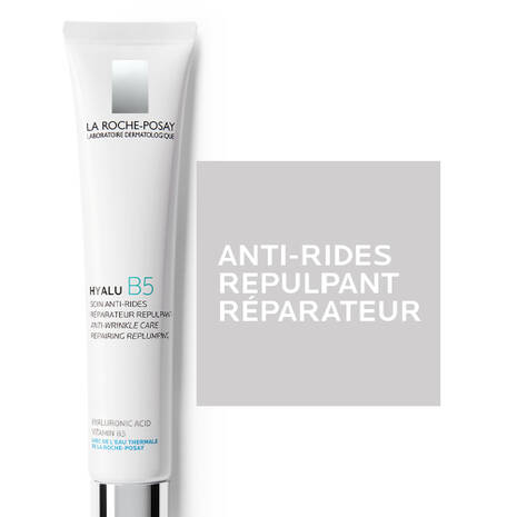 Soin à l’acide hyaluronique anti-rides Anti-rides. Repulpe la peau. Renforce la barrière cutanée. Hyalu B5 est un soin anti-rides pour tous les types de peaux. Ce soin à l’acide hyaluronique corrige les rides, hydrate et repulpe la peau pour un visage frais et des traits lissés. La peau profite des bienfaits de la vitamine B5, qui apporte du confort, renforce la barrière cutanée et protège l’épiderme. Sa texture légère pénètre instantanément dans la peau. Tous types de peaux, même sensibles. L’Acide hyaluronique est l’actif anti-âge le plus plébiscité pour répondre aux préoccupations des femmes concernant les rides et la perte…