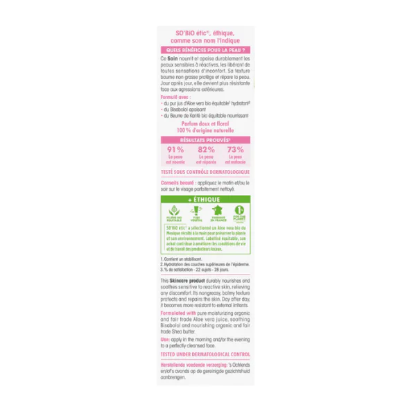 Hydra Aloe Vera – Soin Nutritif Réparateur Bio – 50 ml – SO’BIO étic