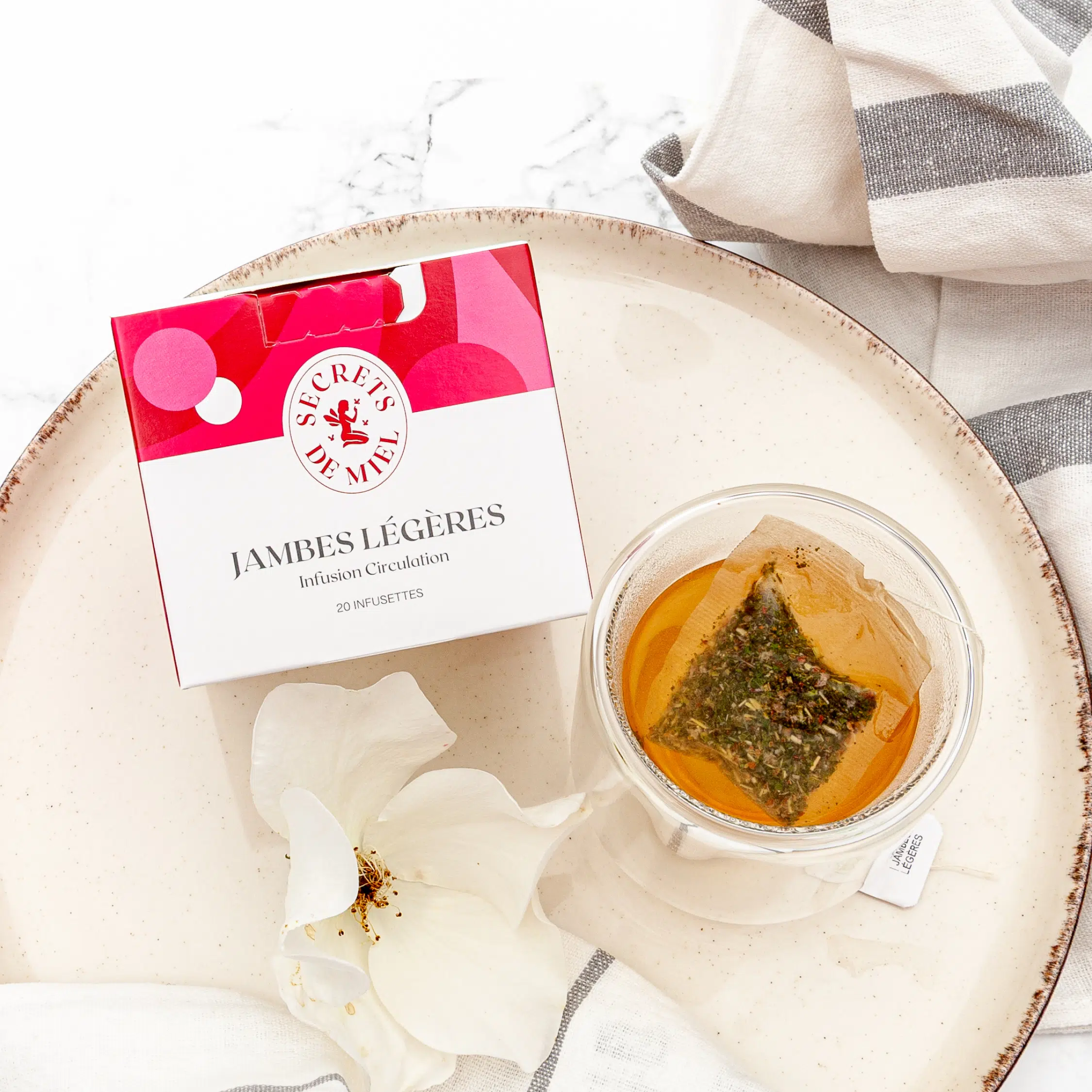 Une merveilleuse alchimie de plantes françaises magiques et revigorantes, sans arôme ajouté, pour le bien-être des jambes et de tout le corps. Les gourmets peuvent ajouter une petite cuillère de miel de Châtaignier.