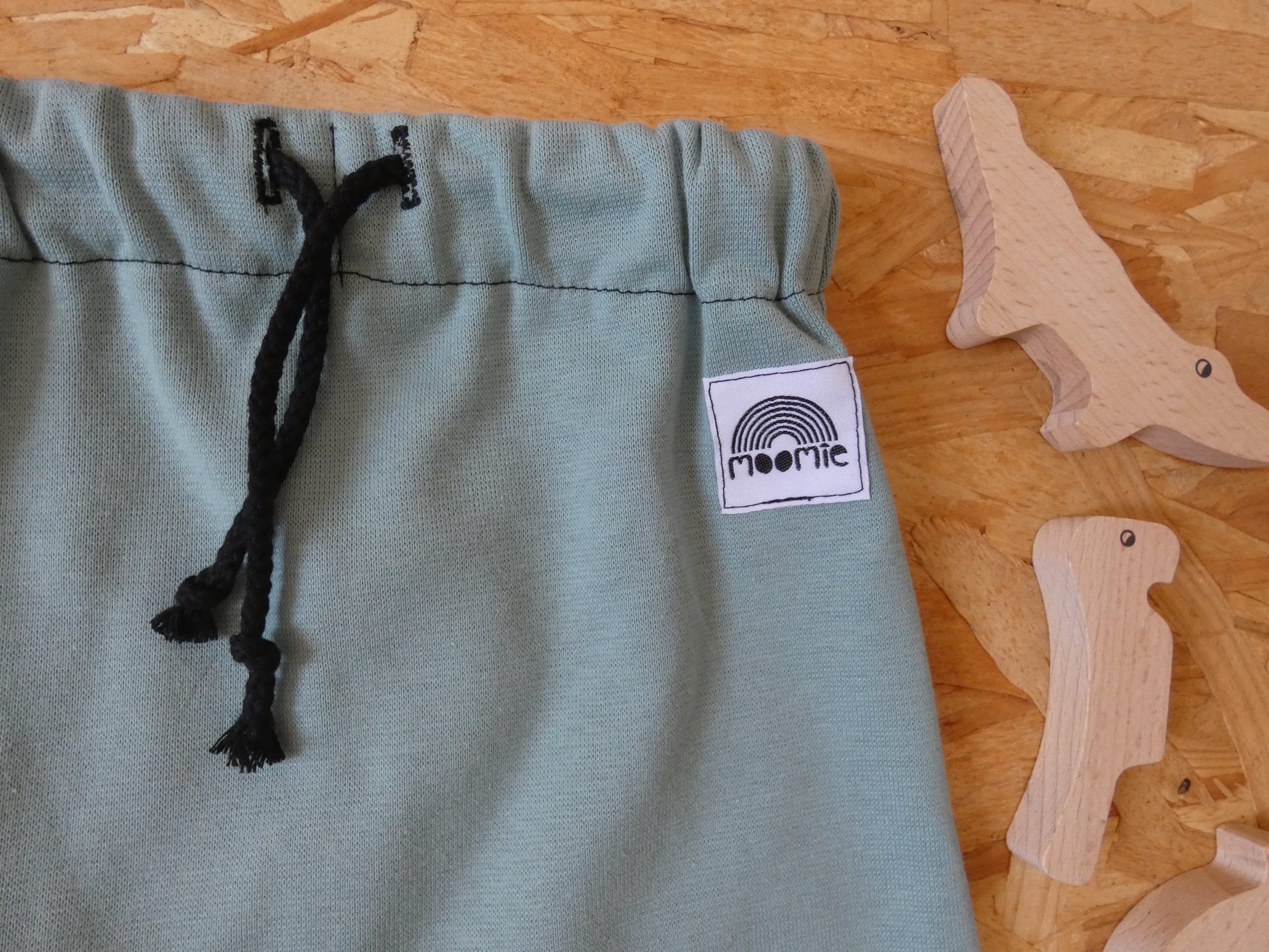 Un pantalon en coton bio tout doux. Il est conseillé (voire recommandé) de l’assortir avec les imprimés de la Collection Moomie.