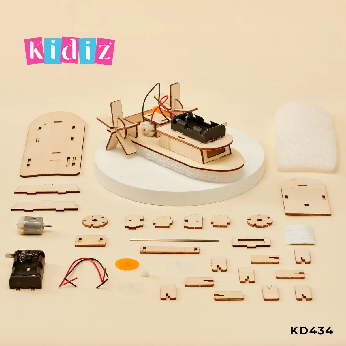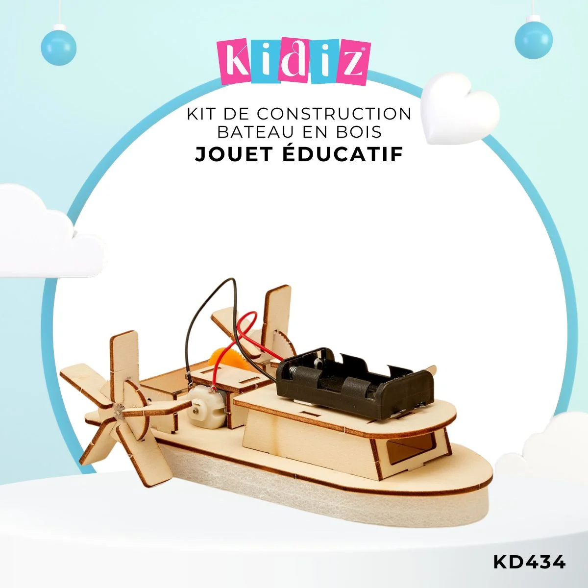 Kit de Construction Bateau à Aube en Bois KD434 Kidiz : Le Navire Motorisé STEM