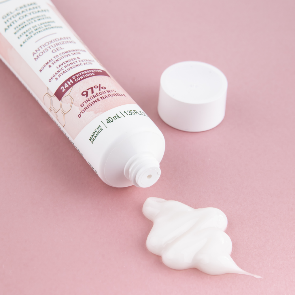 Spécialement formulé pour diffuser aux peaux mixtes sensibles et réactives une hydratation pendant 24h*, le gel-crème hydratant anti-oxydant prévient de l’apparition de brillances et apaise la peau.