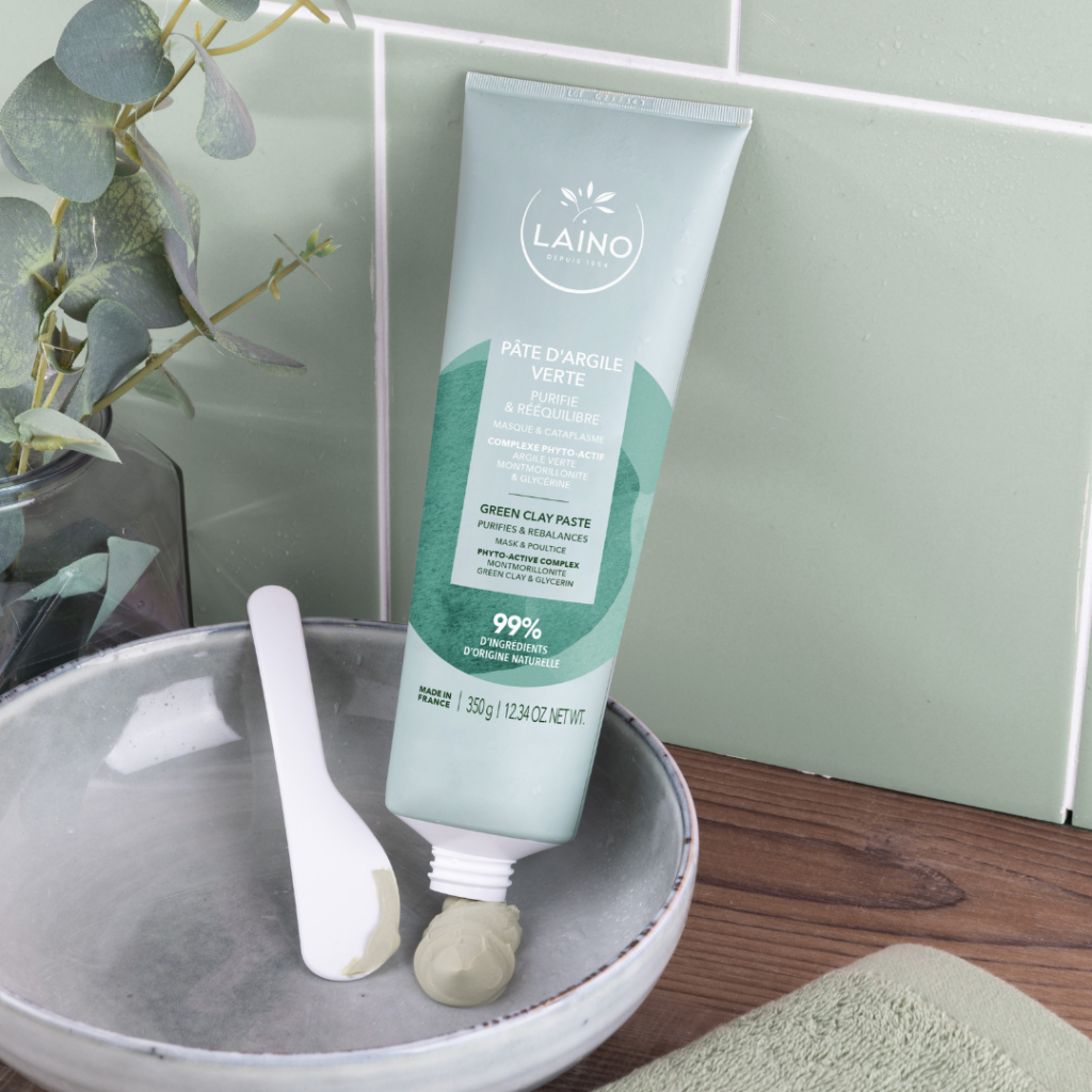 Cette pâte d’argile verte Laino de Montmorillonite prête à l’emploi absorbe l’excès de sébum pour purifier et rééquilibrer l’épiderme de par sa richesse en oligo-éléments et minéraux.