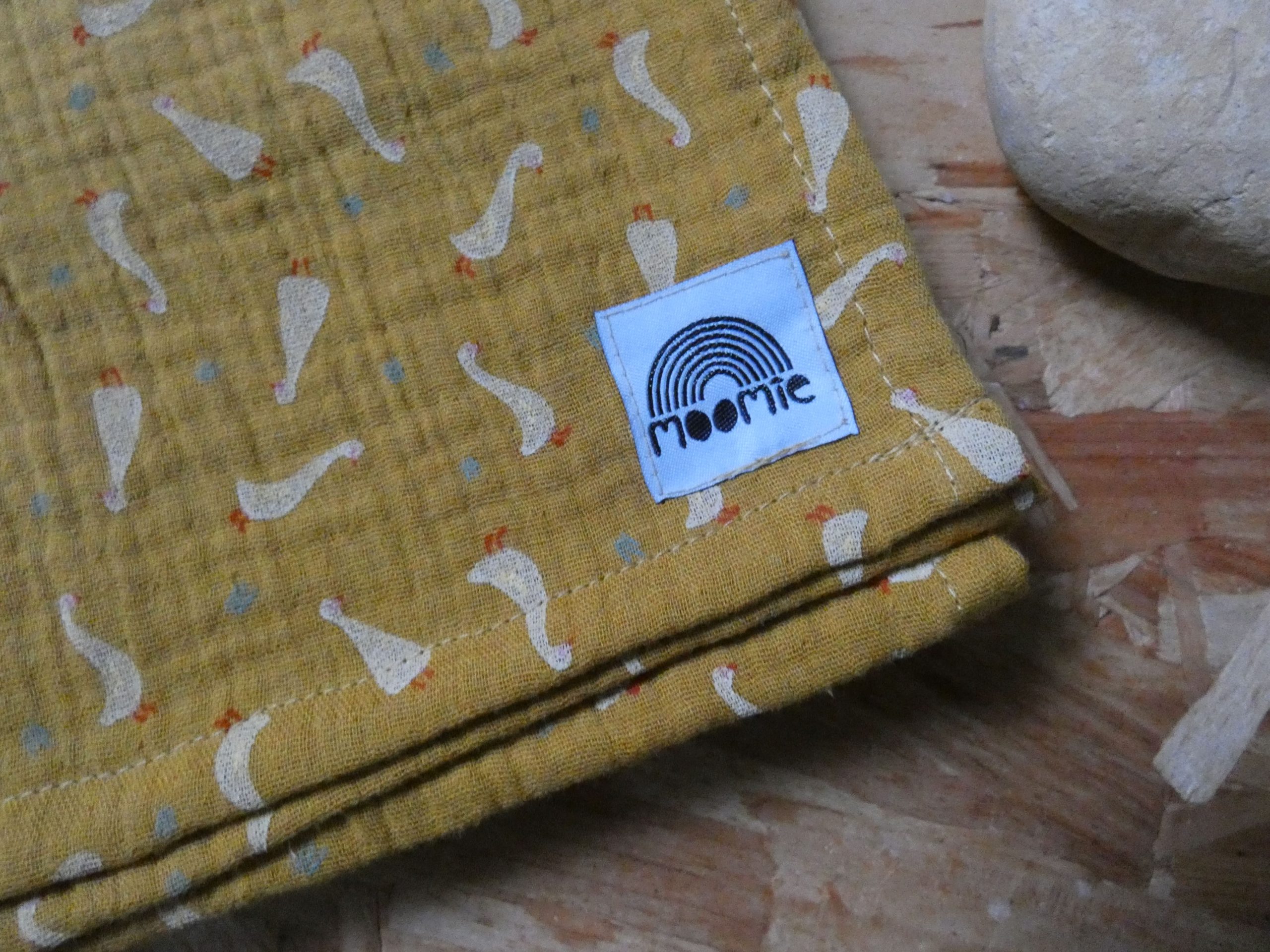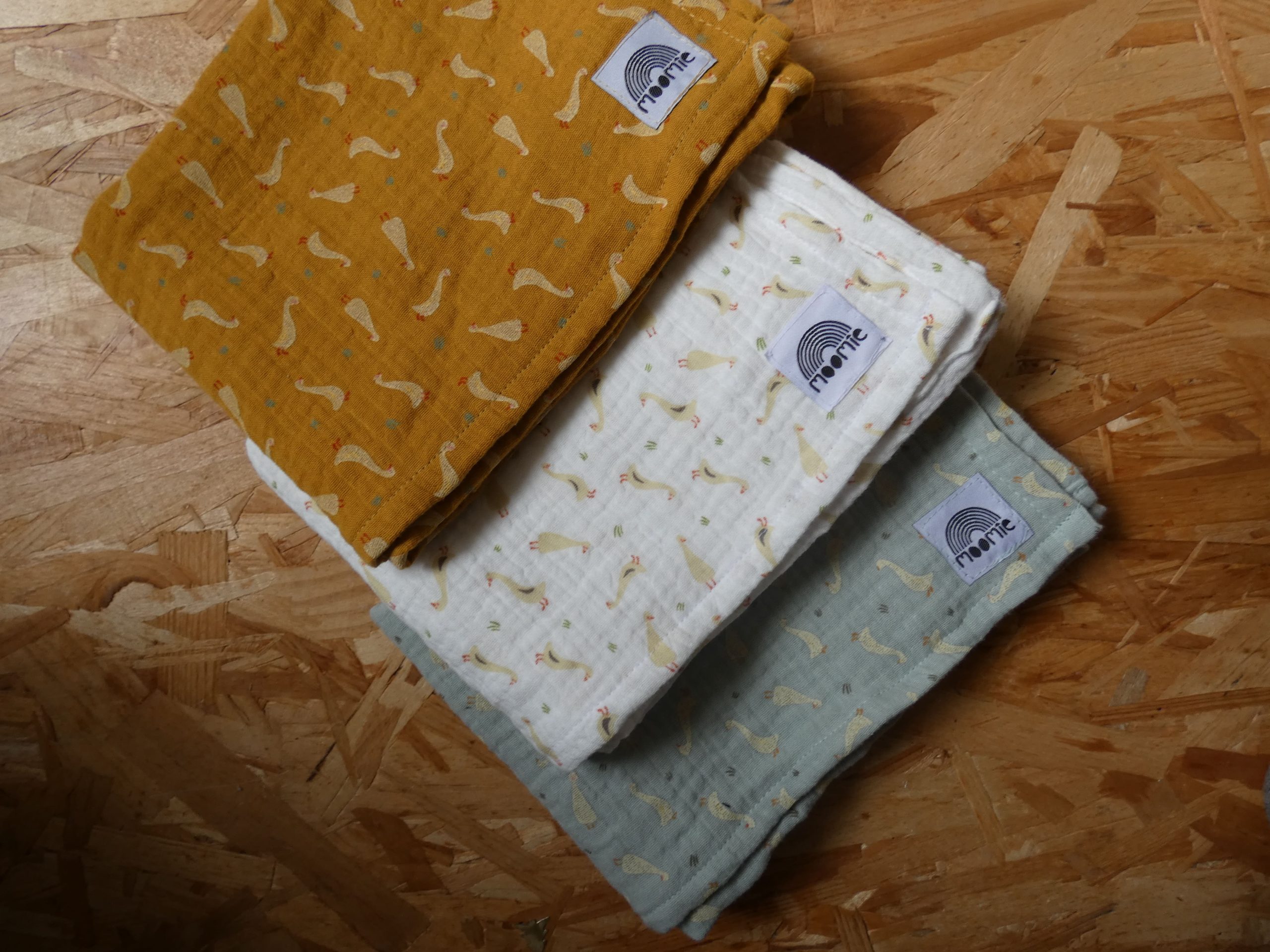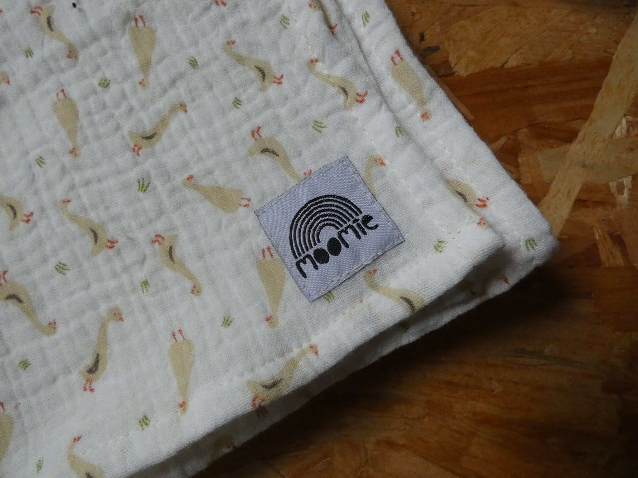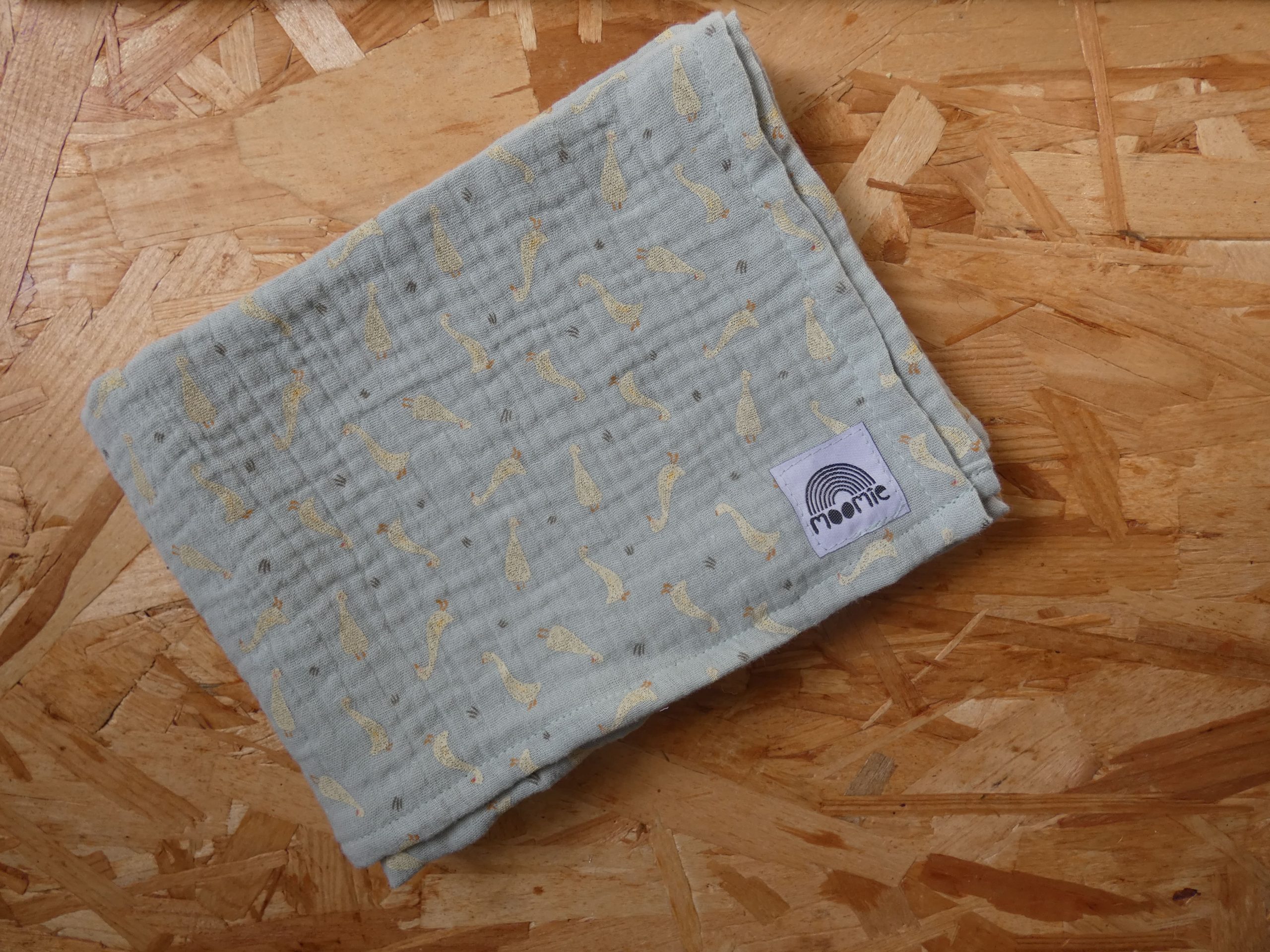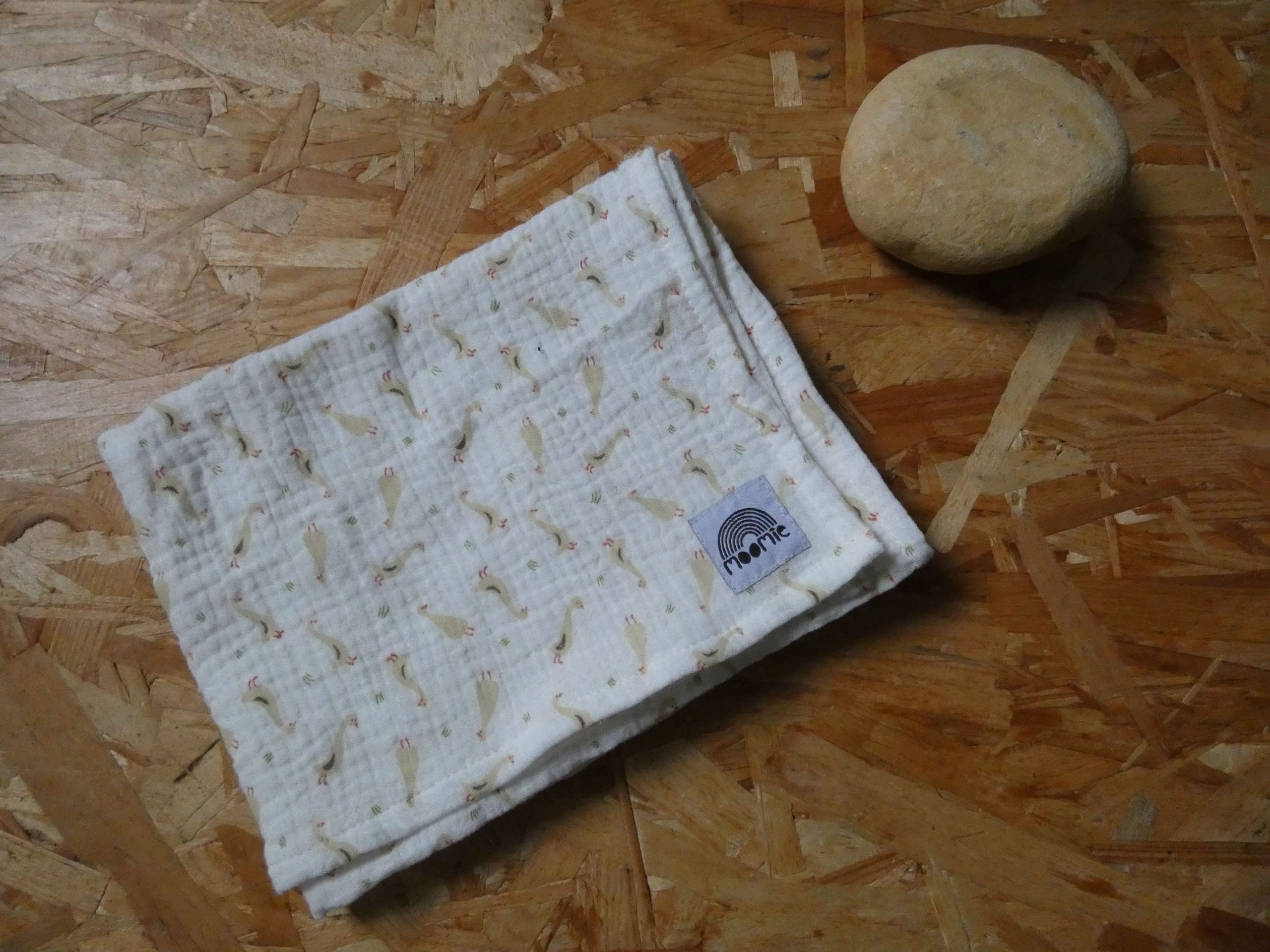 Un lange en coton bio avec un imprimé oies plein de douceur.