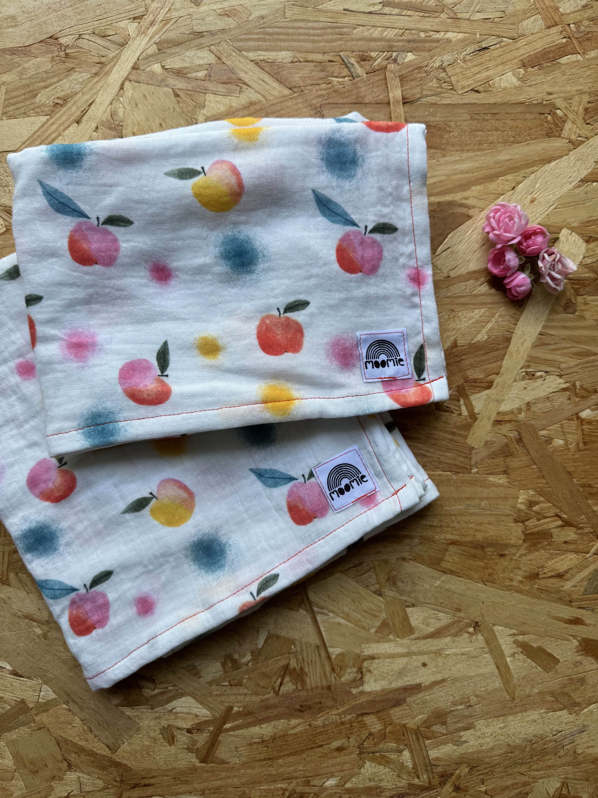 Des pommes colorées pour un joli lange. Existe en 2 tailles.