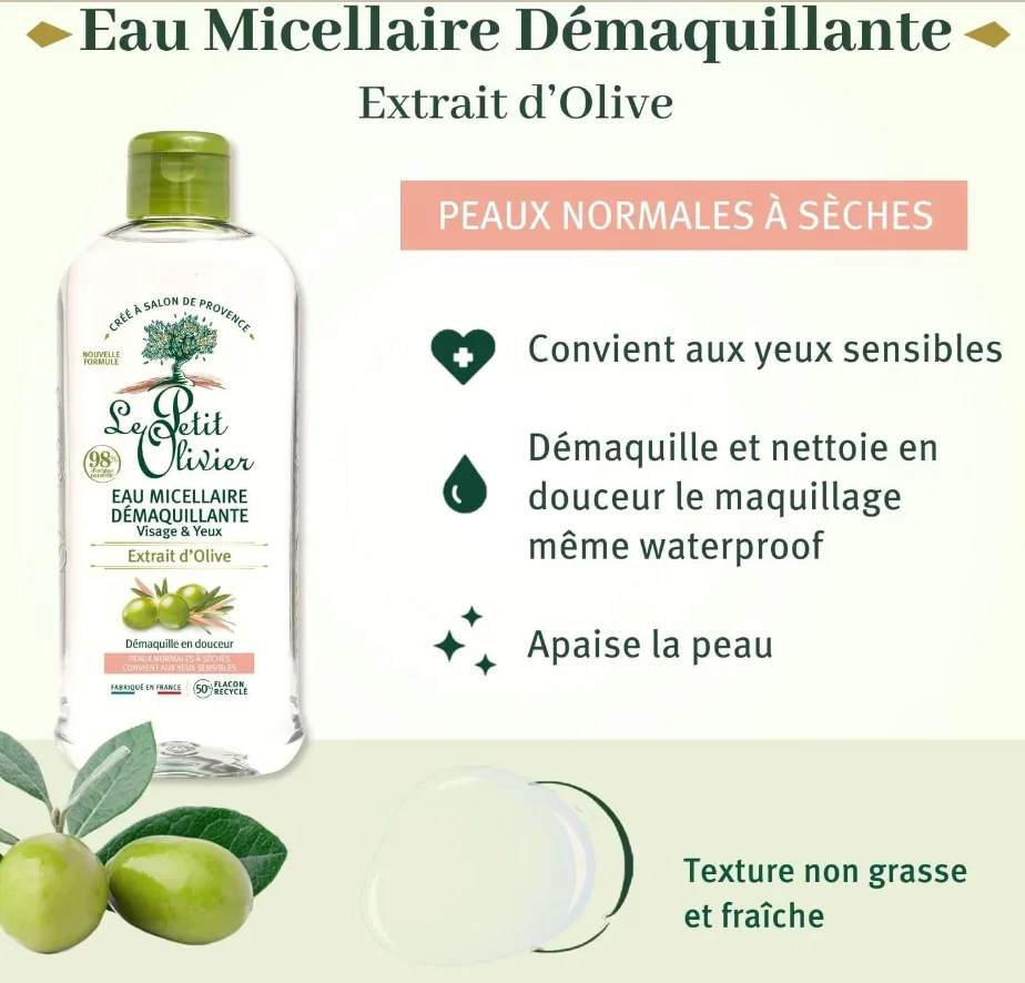 Le Petit Olivier Eau Micellaire Démaquillante Visage & Yeux – Peaux Normales à Sèches -400ml