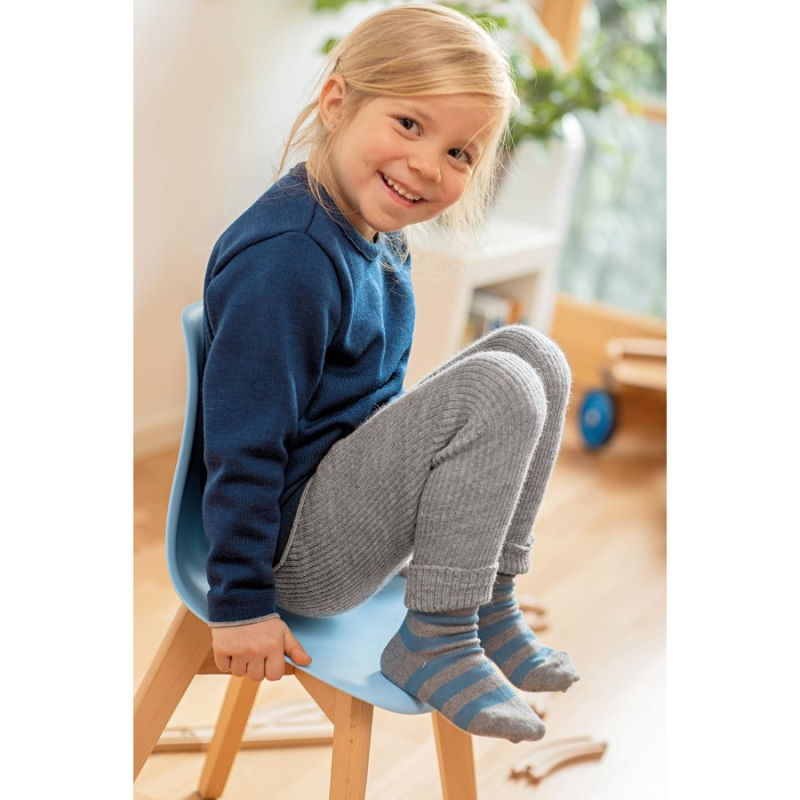 Le leggings Gris Disana est tricoté en 100 % laine mérinos bio bouillie. Il permet de garder votre enfant bien au chaud tout l’hiver.