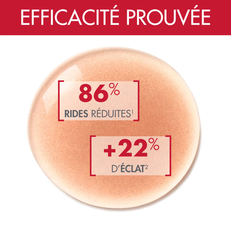 Dès 30 min, les résultats sont visibles sur les rides, et jour après jour la peau est visiblement plus lisse et plus éclatante.