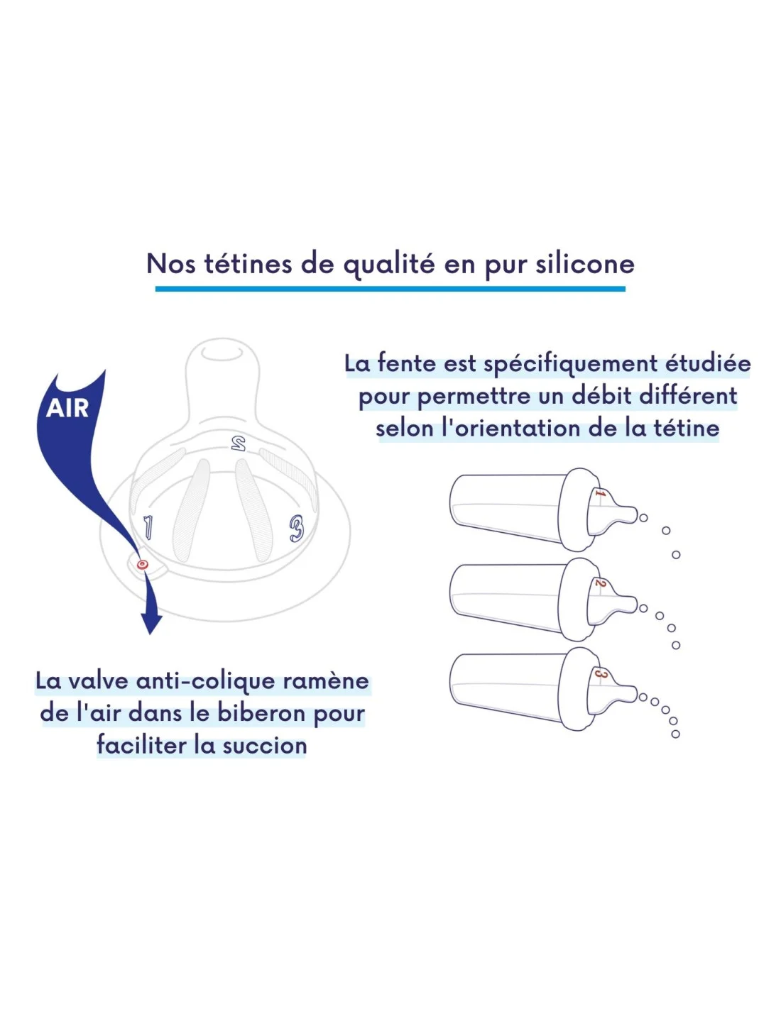 outes les tétines ont 3 vitesses, elles sont donc polyvalentes et ont également un système anti colique MIS breveté. En régulant l’air qui pénètre dans la tétine, le rythme de succion de bébé est respecté et cela réduit sa fatigabilité. Les tétines S sont conçues pour les nourrissons jusqu’à 6 mois environ. Ces dernières sont résistantes mais il est recommandé de les tester régulièrement pour voir si elles ont d’éventuelles fissures.