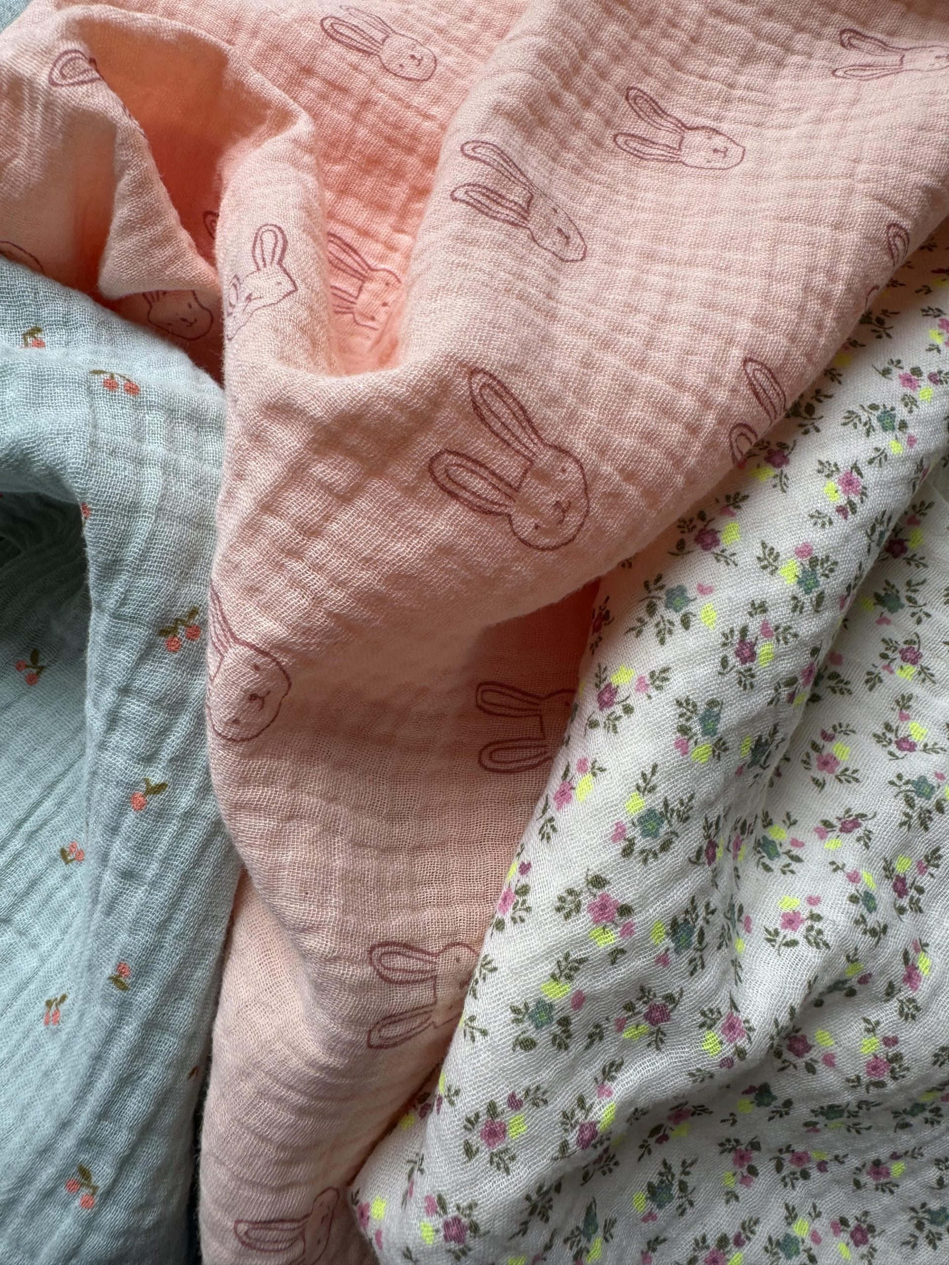 Lot de 3 langes : lapins, cerises et fleurs