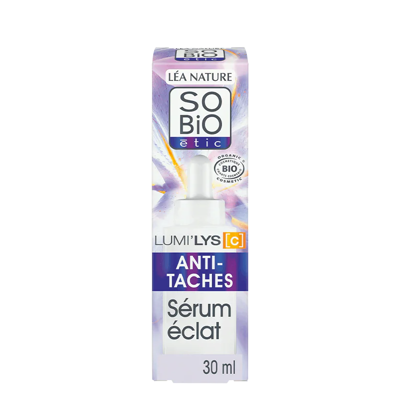 Découvrez LUMI’LYS [C], la nouvelle gamme experte anti-taches de SO’BiO étic, spécialement conçue pour unifier le teint et réduire visiblement l’apparence des taches. Que ce soit des taches liées à l’âge, au soleil, à l’acné ou au mélasma, LUMI’LYS [C] agit avec efficacité grâce à une formule naturelle, testée cliniquement pour des résultats visibles dès 4 semaines.