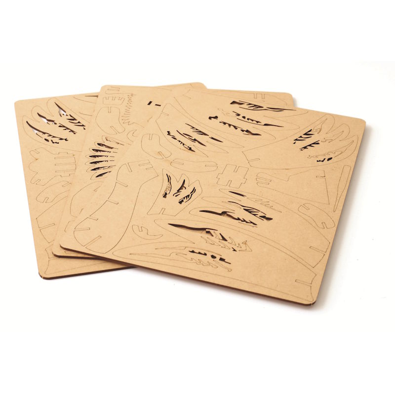 Cette maquette Condor est composée de 47 pièces en bois qui s’emboîtent facilement entre elles et ne nécessitent pas de colle ou de vis. Ces 47 pièces sont réparties sur 3 planches en bois prédécoupées et numérotées.