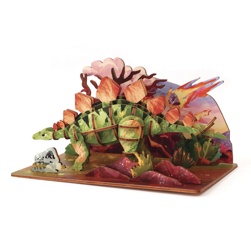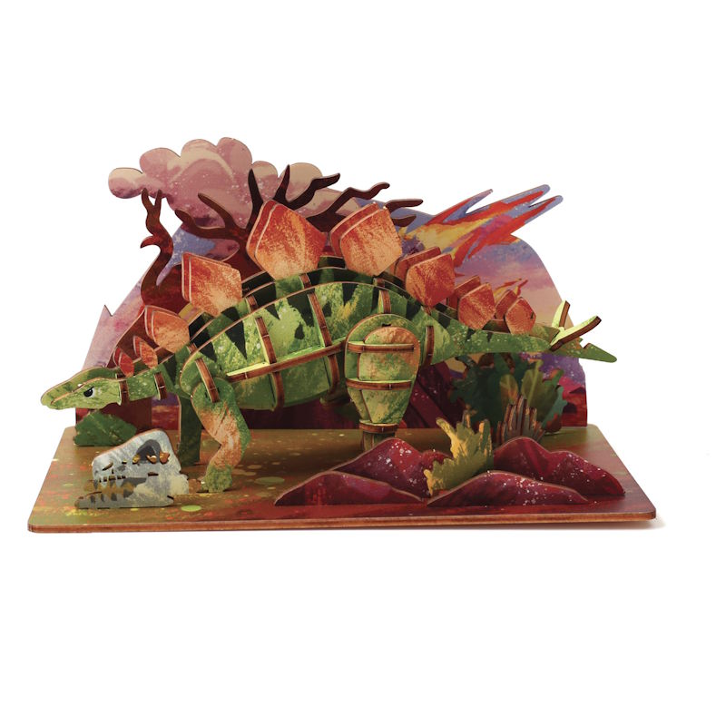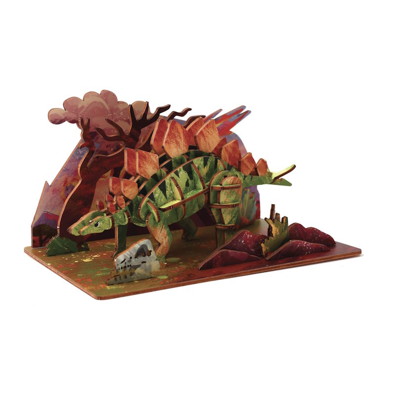 Maquette bois 3D Stégosaure et son décor – Graine Créative