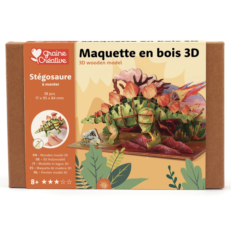 Découvrez la maquette 3D en bois Stégosaure de la marque Graine Créative, une maquette à assembler sans aucun outil !