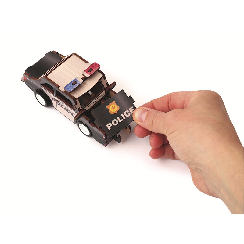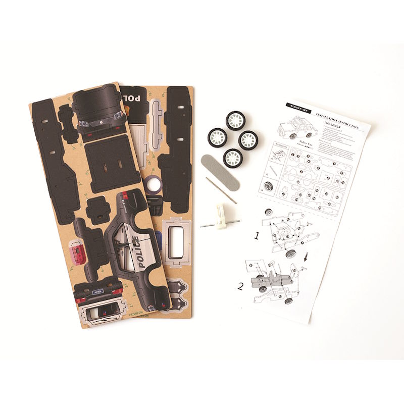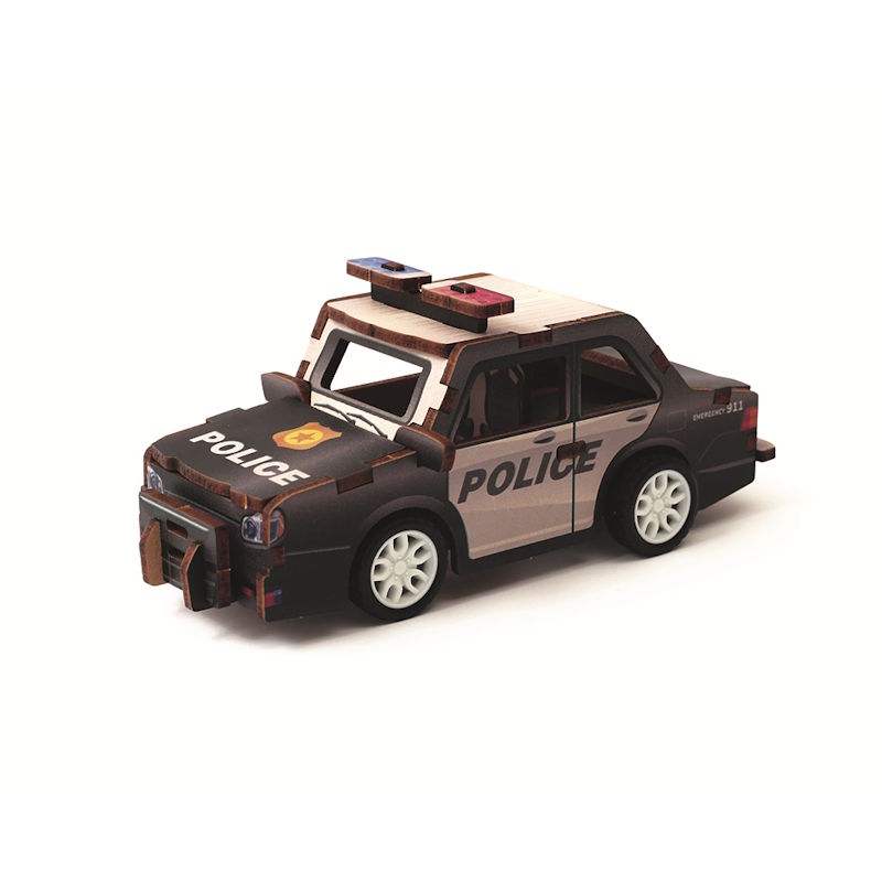 Découvrez la maquette 3D en bois Voiture de Police de la marque Graine Créative, une maquette à assembler sans aucun outil !