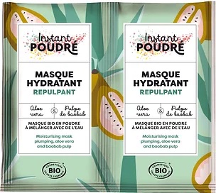 Masque repulpant aux actifs hydratants tels que l’aloe vera, la pulpe de baobab, ce masque hydrate votre peau en profondeur. Ce sachet contient 2 doses. Utilisation : Verser la préparation dans un bol et ajouter 15 ml d’eau. Mélanger pour avoir une texture homogène. Appliquer le masque sur le visage et le cou préalablement humidifiés. Laisser poser 6 à 8 minutes. Rincer à l’eau tiède. Pour faciliter l’application nous vous conseillons le pinceau soin avec son embout en silicone. 100% des ingrédients sont d’origine naturelle dont 75% sont issus de l’Agriculture Biologique.